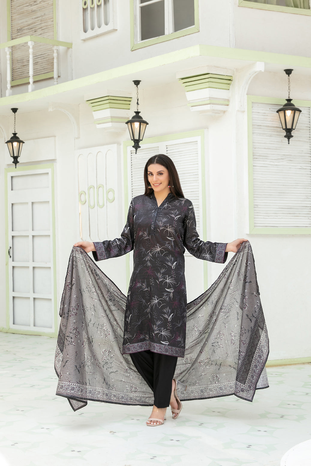 3 Piece Stitched Collection By Tawakkal Fabrics, Attractive & Elegant Slub Lawn Collection comes with: