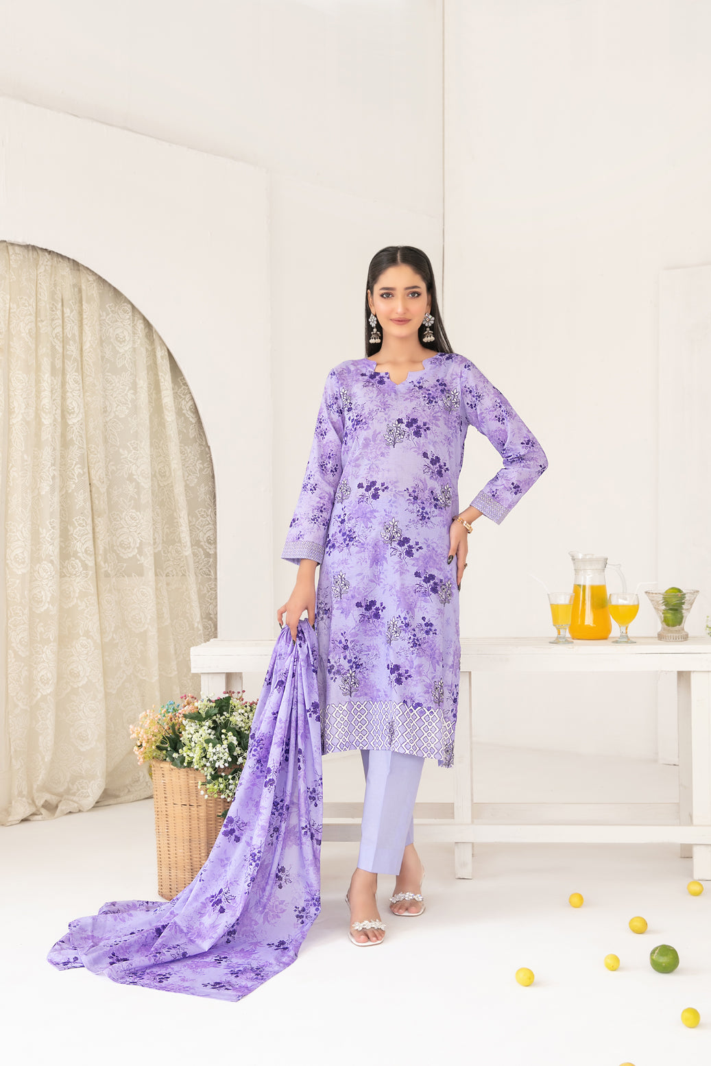 3 Piece Un-Stitched Collection By Tawakkal Fabrics, Attractive & Elegant Lawn Collection comes with: