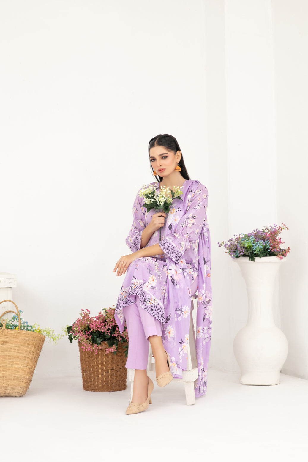 3 Piece Un-Stitched Collection By Tawakkal Fabrics, Attractive & Elegant Lawn Collection comes with: