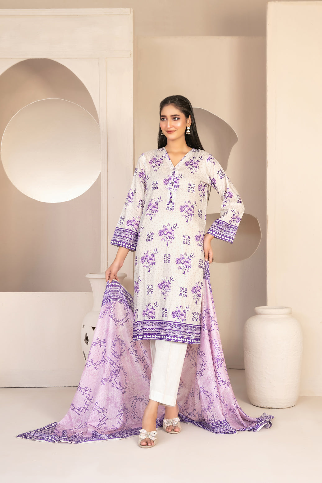 3 Piece Stitched Collection By Tawakkal Fabrics, Attractive & Elegant Slub Lawn Collection comes with: