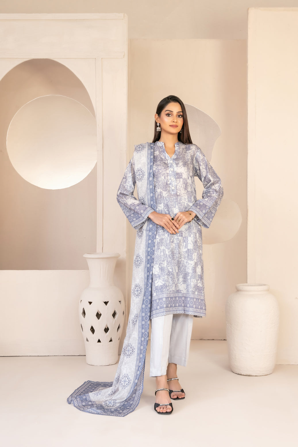 3 Piece Stitched Collection By Tawakkal Fabrics, Attractive & Elegant Slub Lawn Collection comes with: