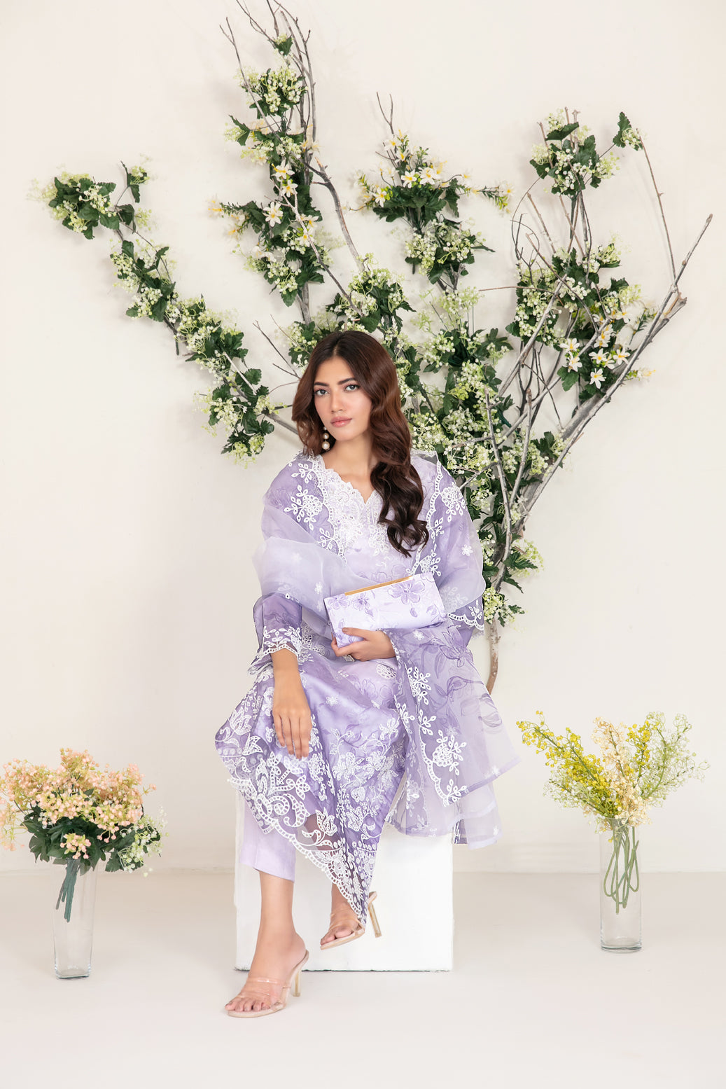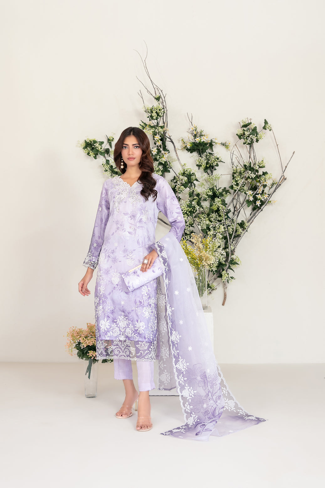 3 Piece Semi-Stiched Collection By Tawakkal Fabrics, Attractive & Elegant Organza Collection comes with: