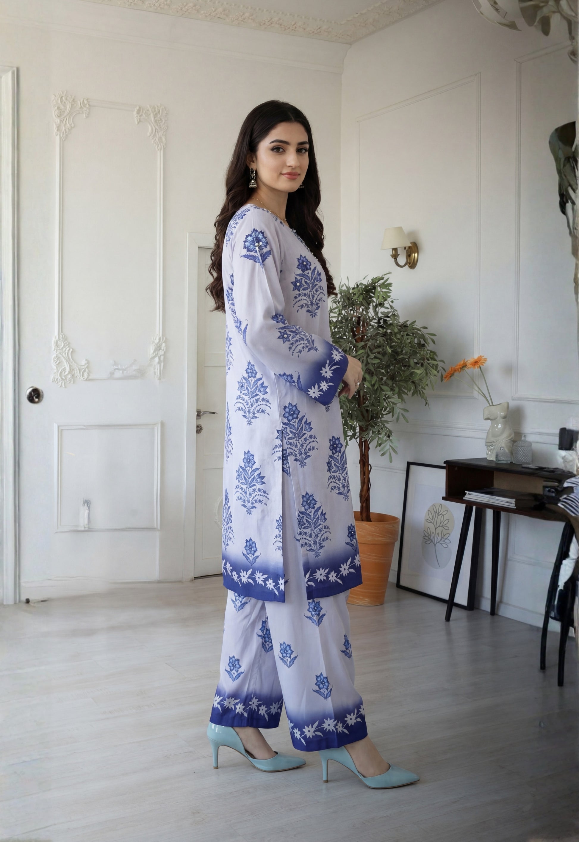 • Stitched 3D Flower Embroidered Printed Swiss Shirt Designs with Embellishments