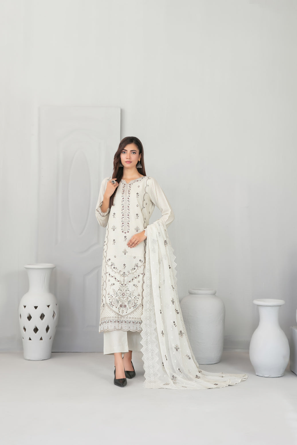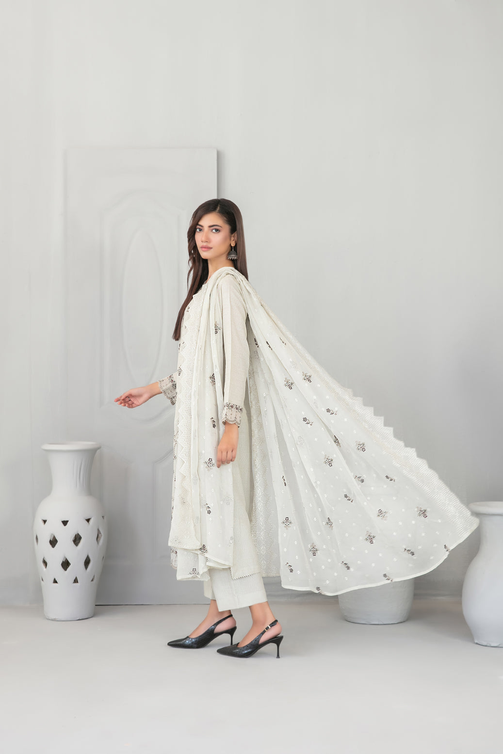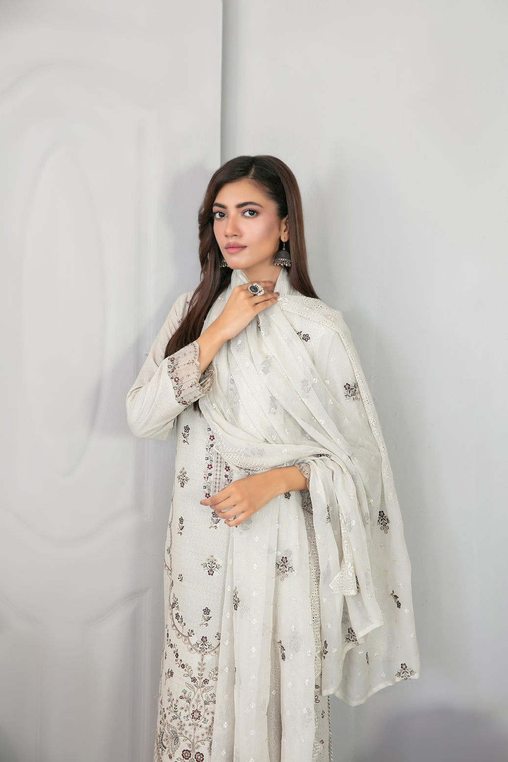 • Embroidered Chiffon Schiffli Dupatta