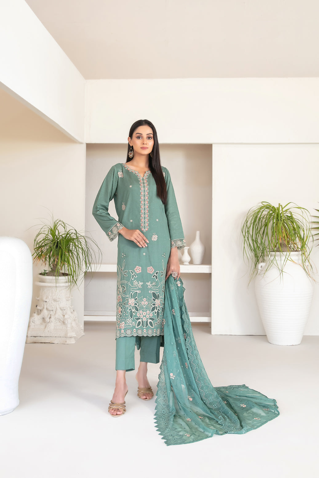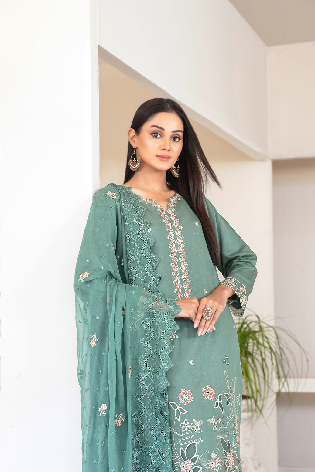 • Embroidered Chiffon Schiffli Dupatta