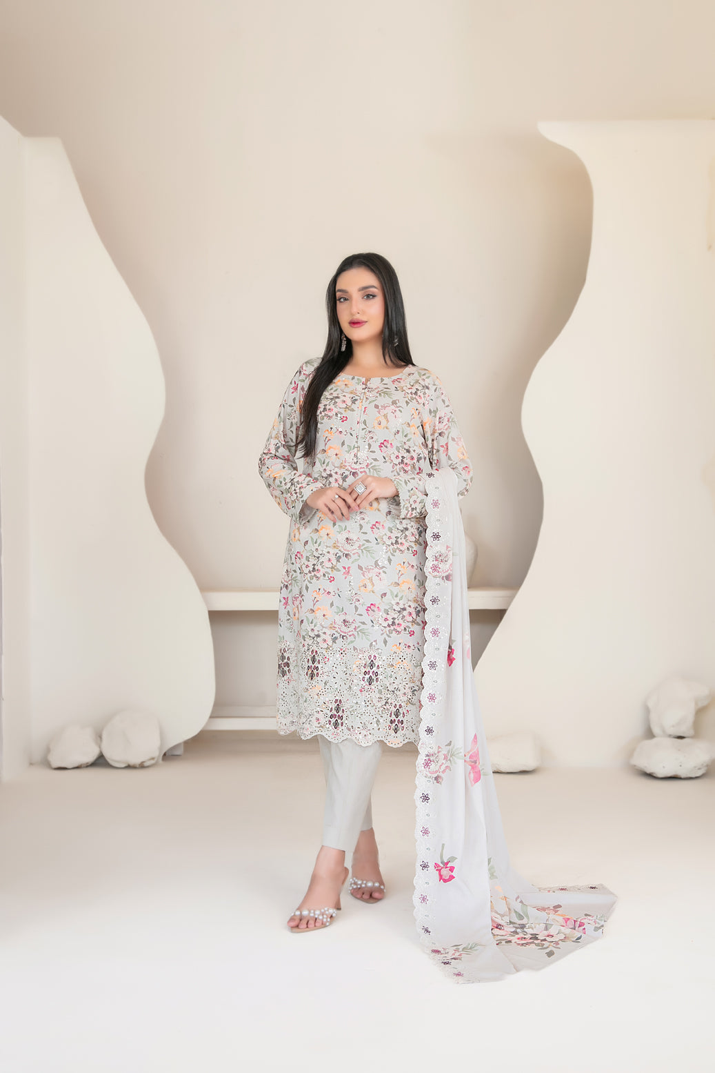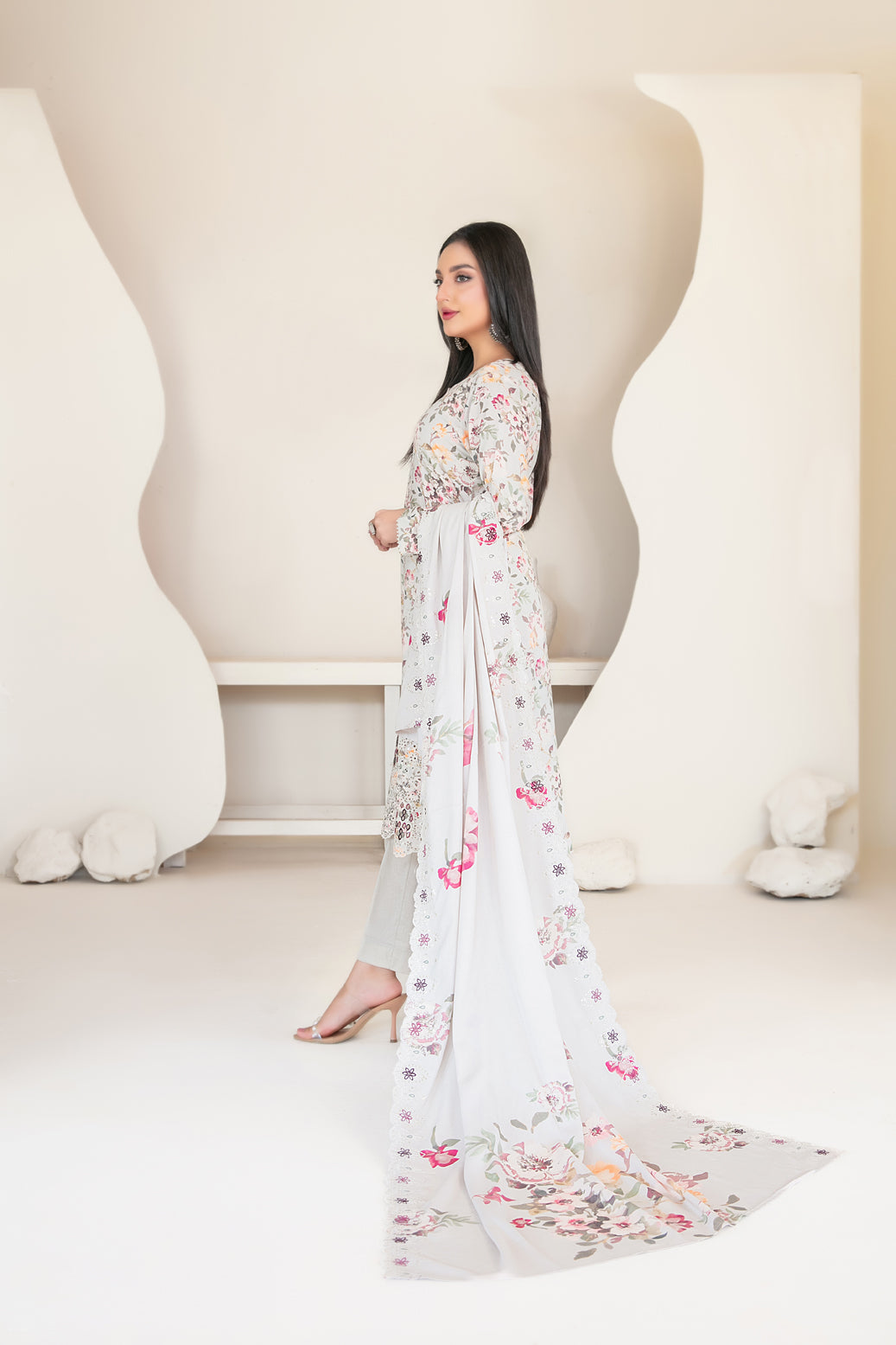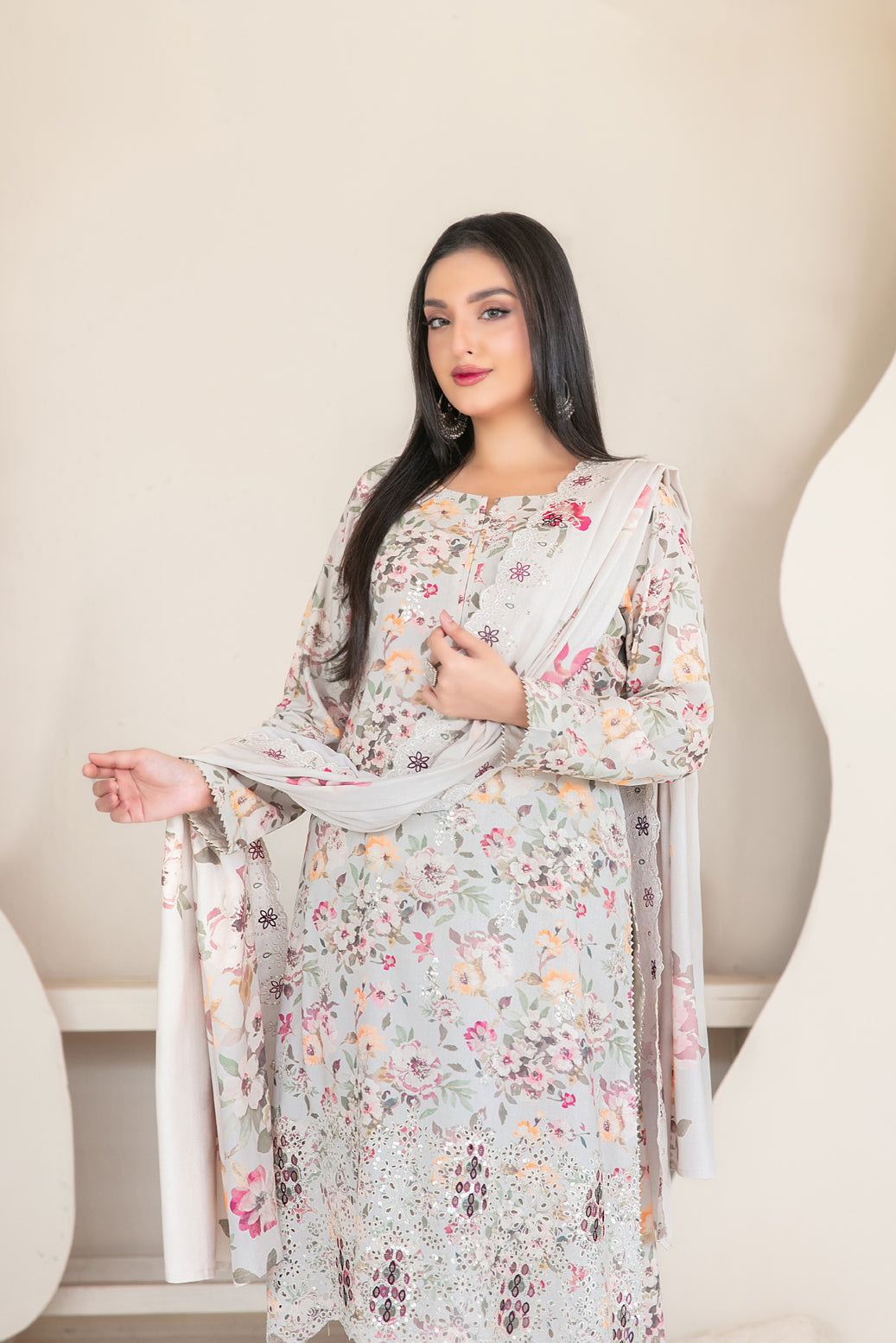 • Embroidered Digital Printed Staple Shawl Dupatta