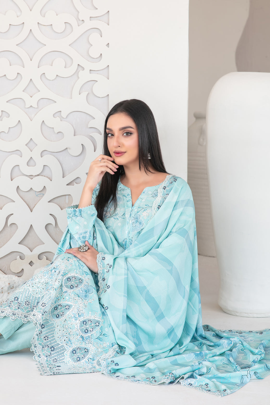 - Embroidered Digital Printed Staple Shawl Dupatta