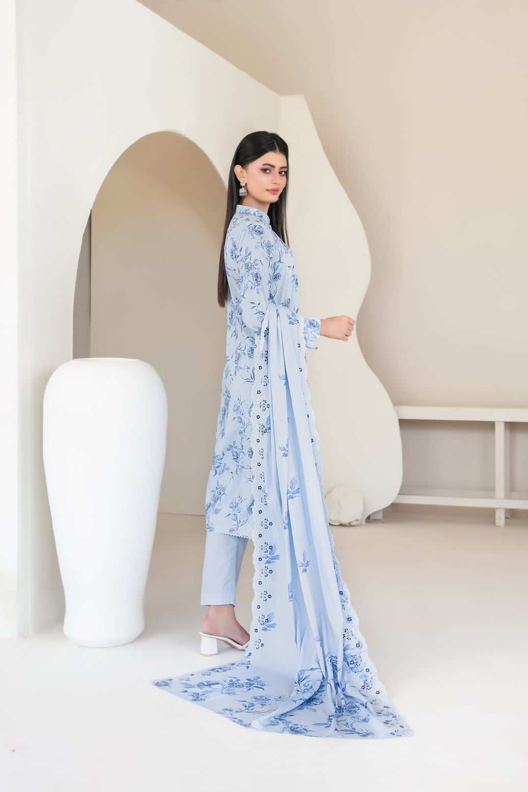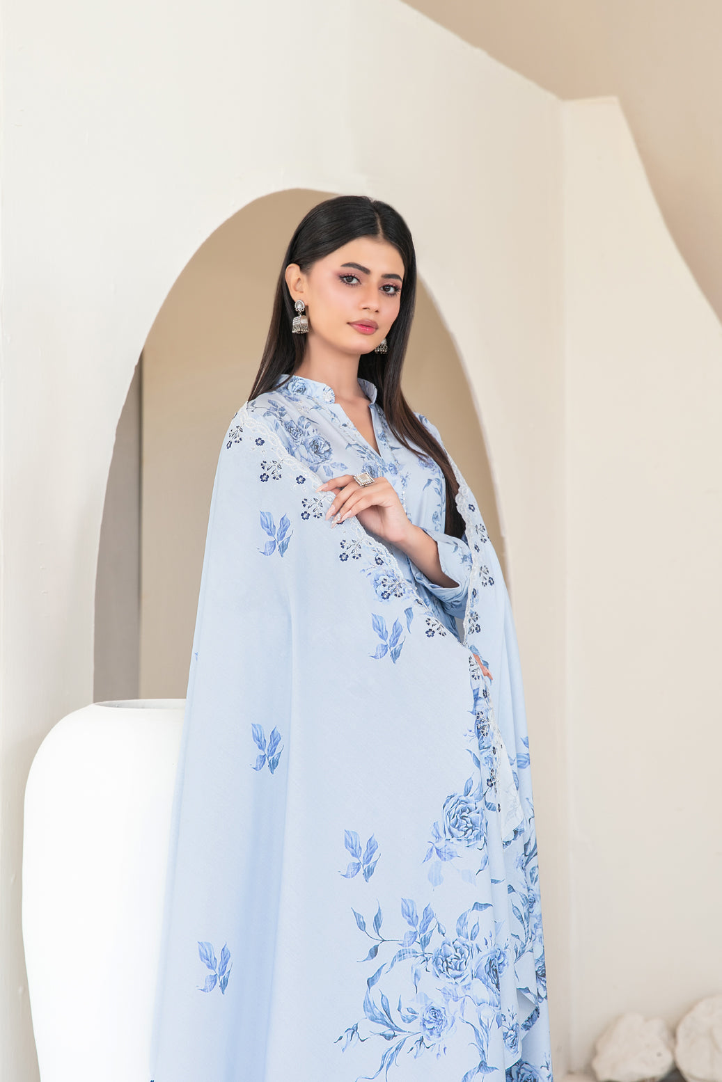 - Embroidered Digital Printed Staple Shawl Dupatta