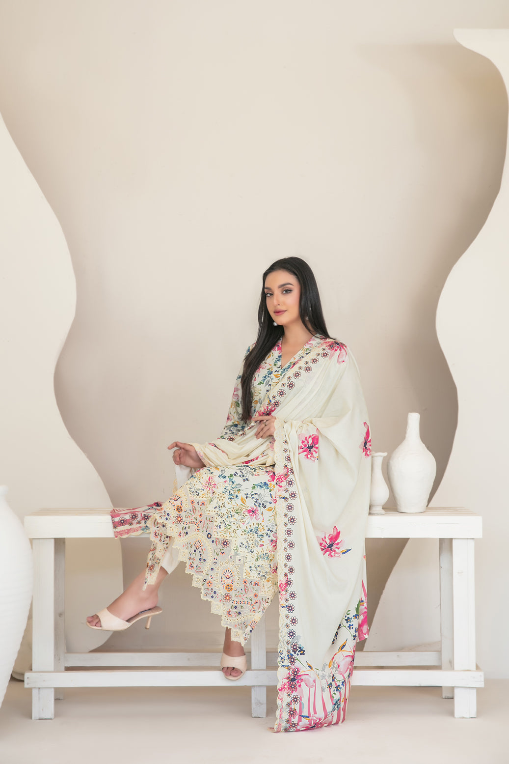 • Embroidered Digital Printed Staple Shawl Dupatta