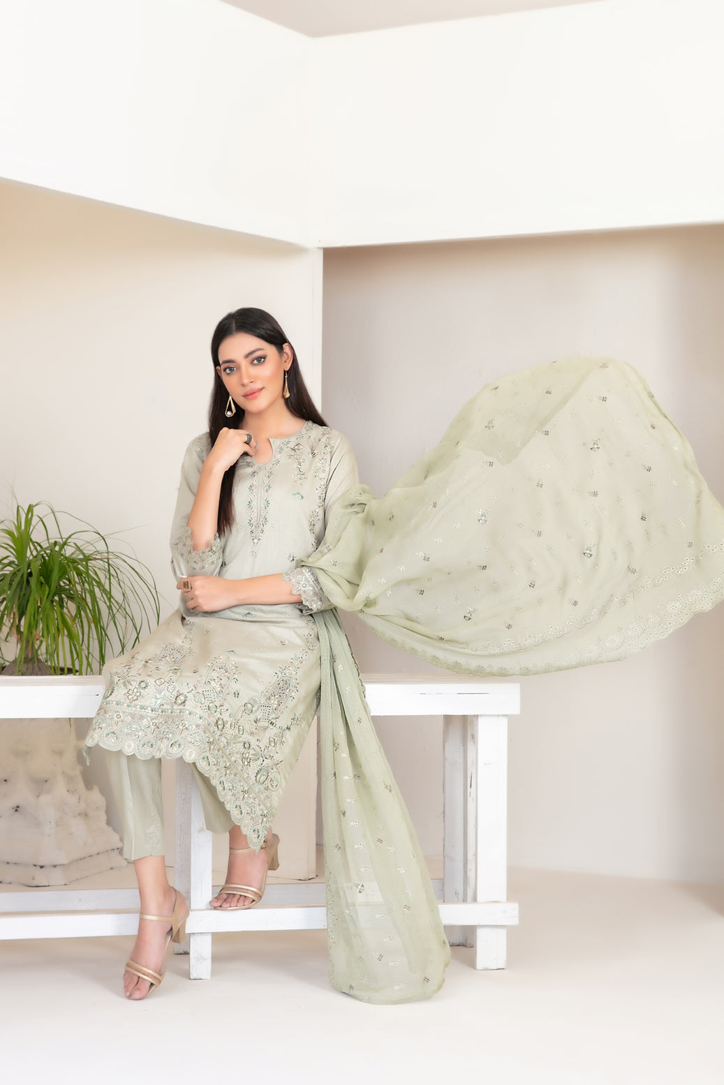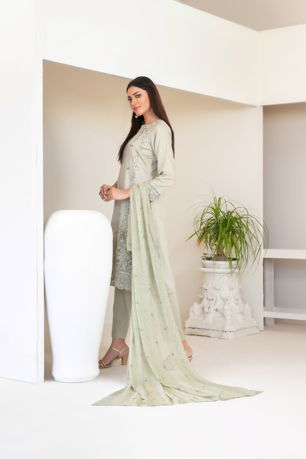 3 Piece Un-Stitched Collection By Tawakkal Fabrics, Attractive & Elegant Viscose Zari Collection comes with: