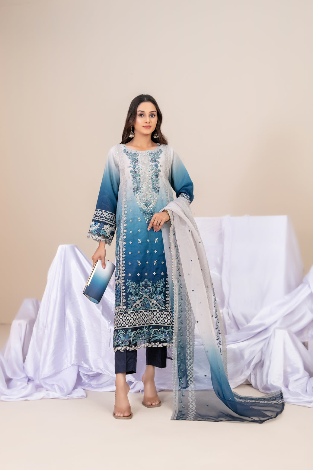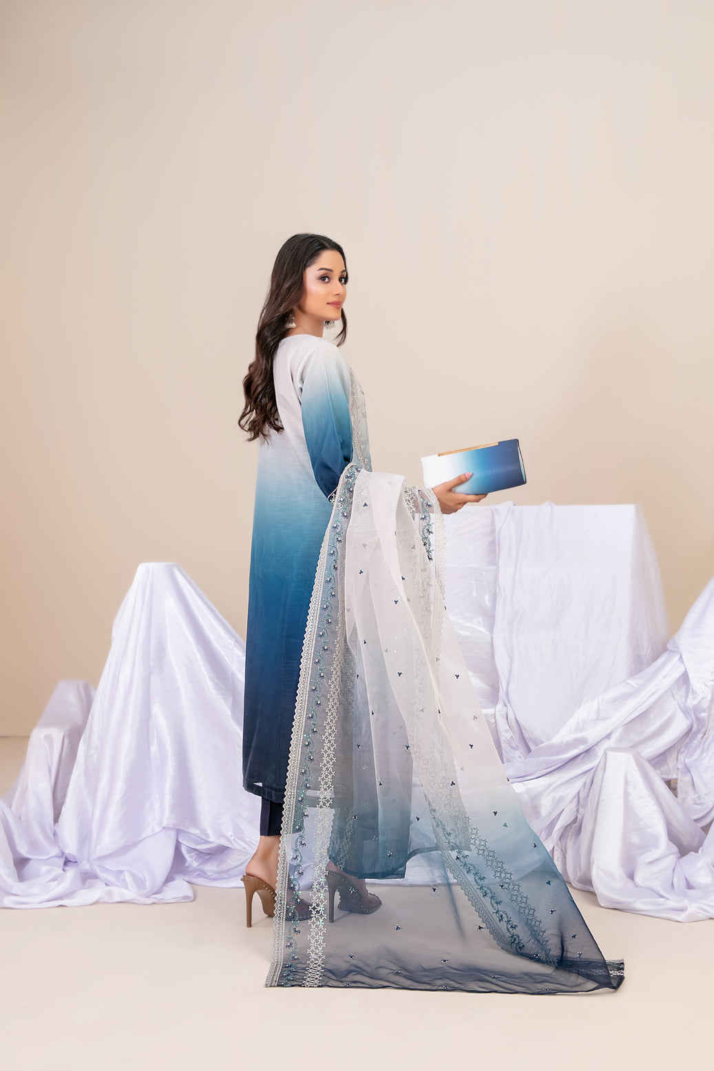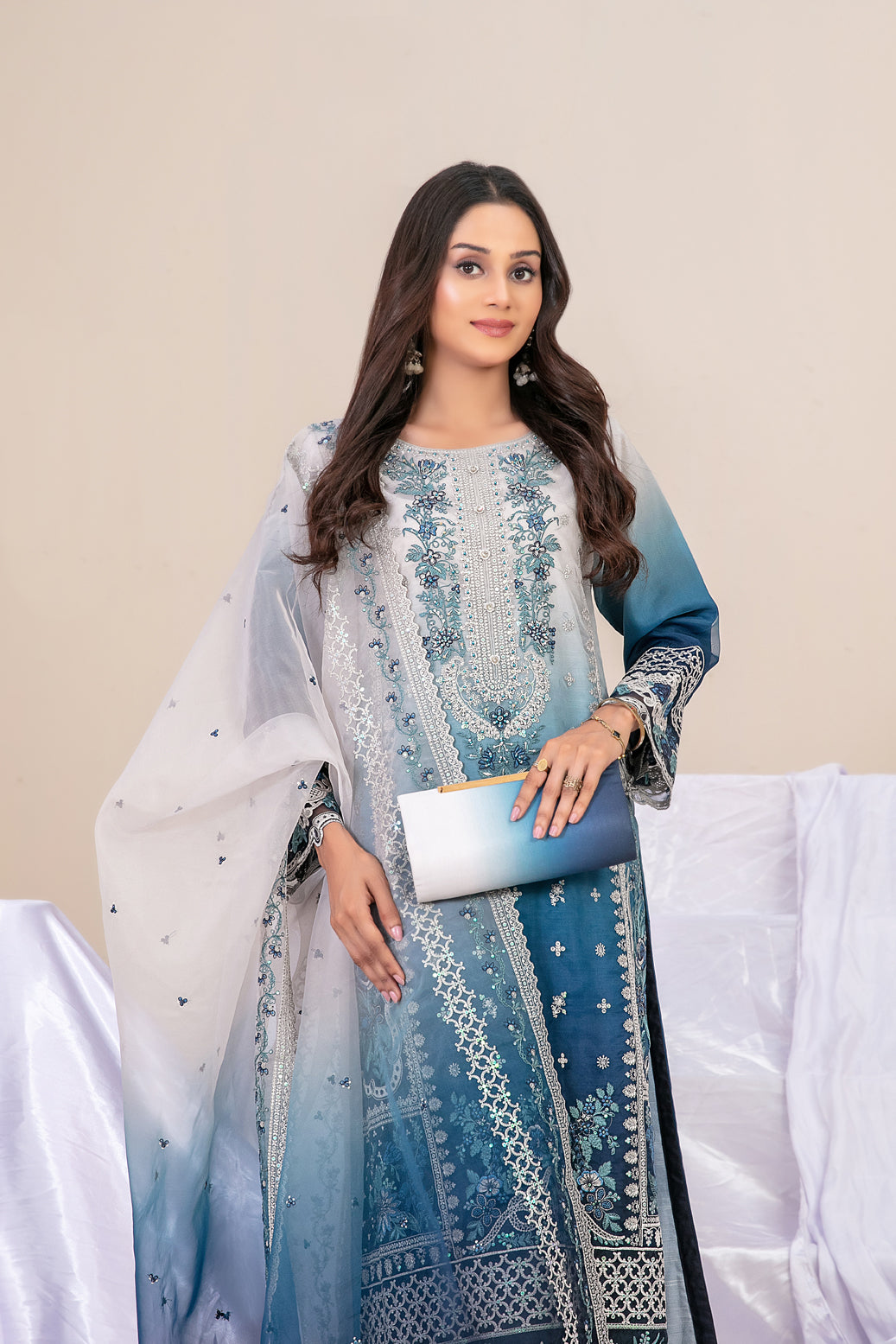 - Exclusive Fancy Embroidered Ombre Organza Dupatta