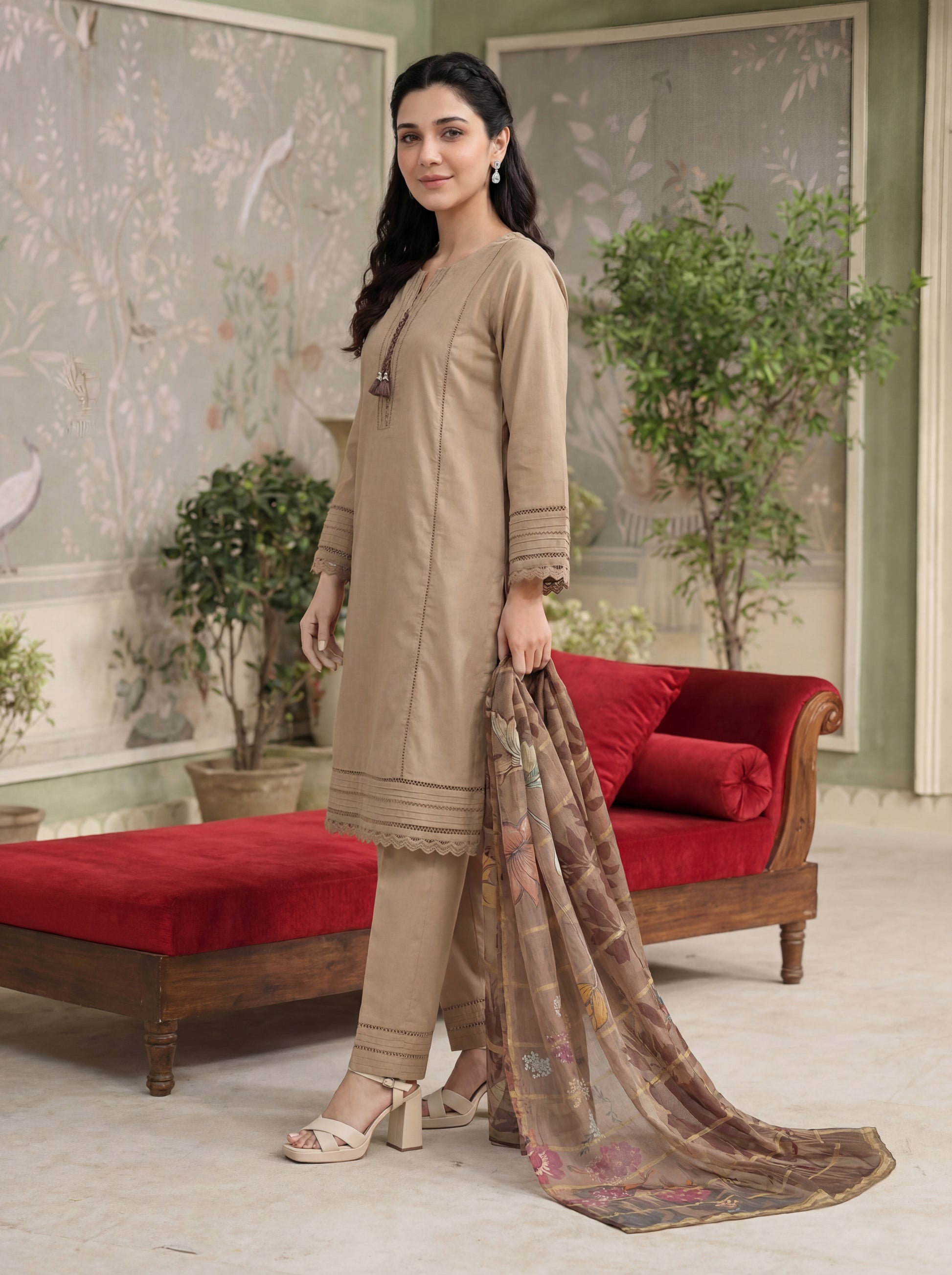 • Stitched Solid Cotton Shirt with Lace Detailing & embellishments