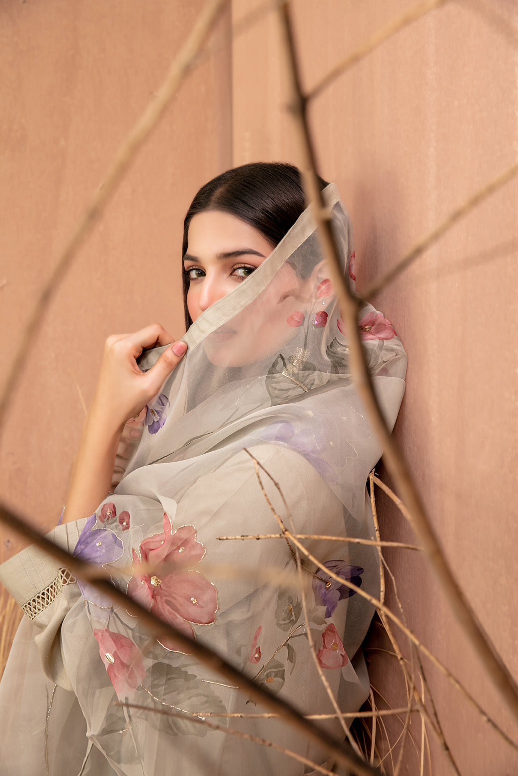 • Exclusive Hand Embellished Printed Organza Dupatta