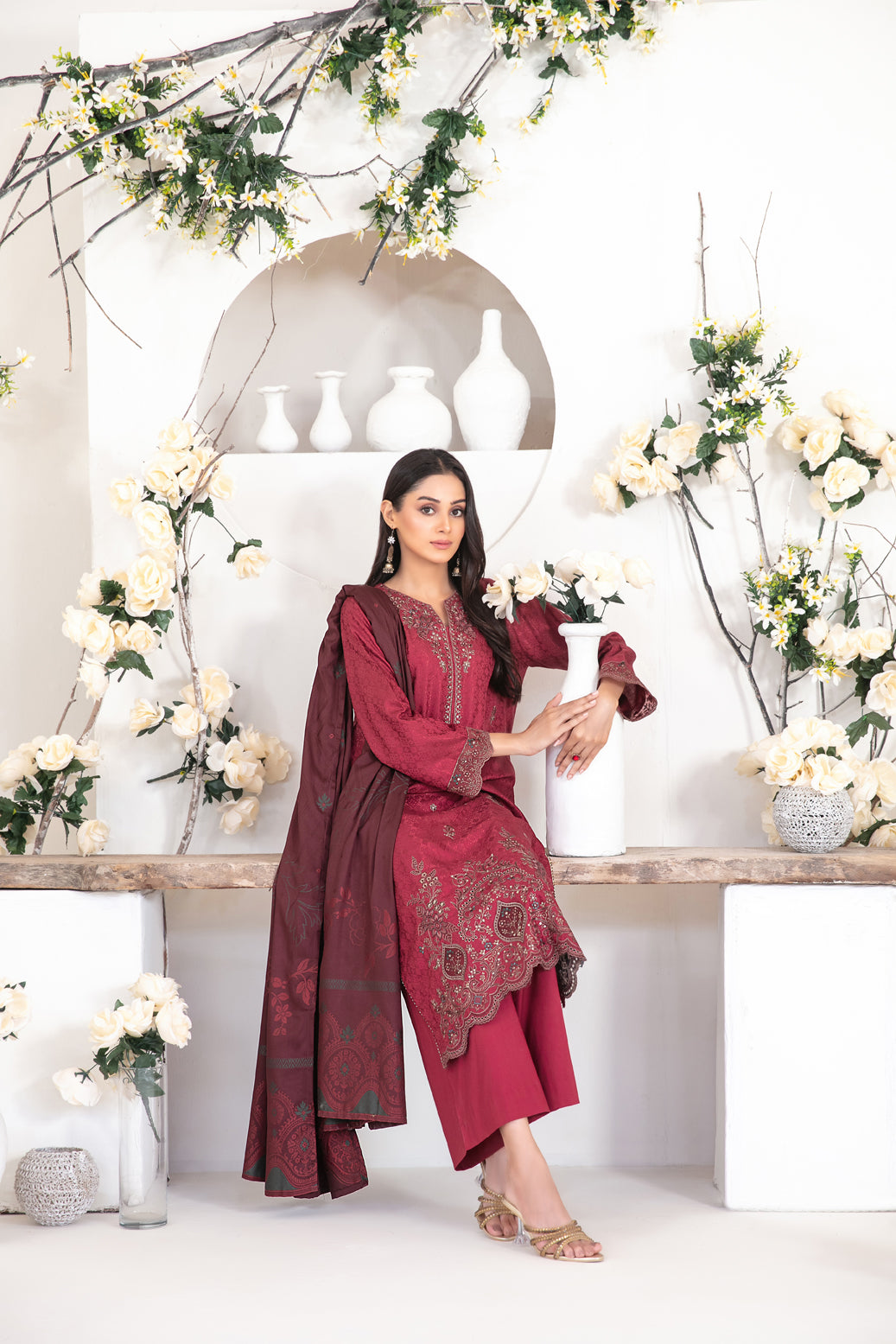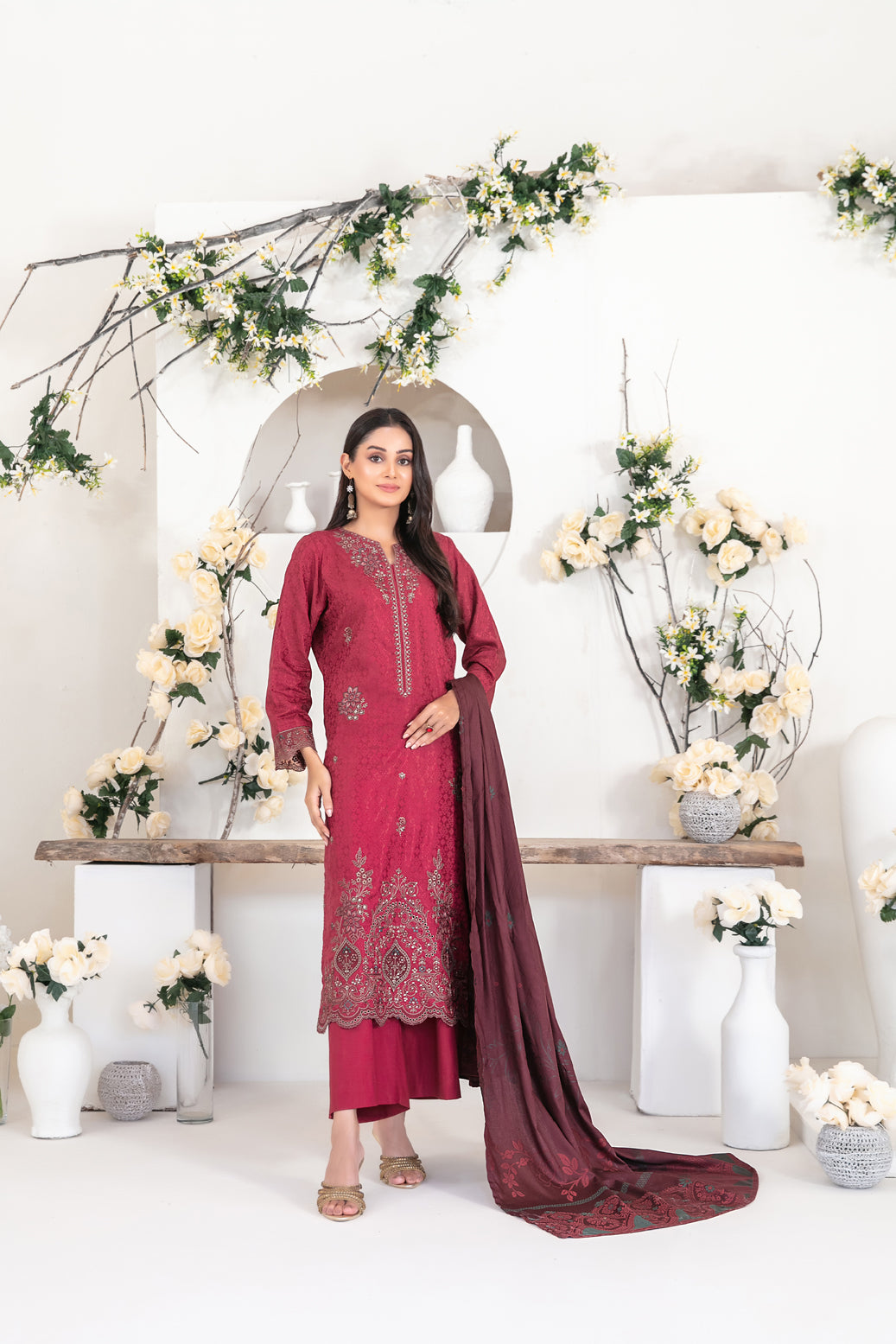 3 Piece Stitched Collection By Tawakkal Fabrics, Attractive & Elegant Viscose Jaquard Collection comes with:
