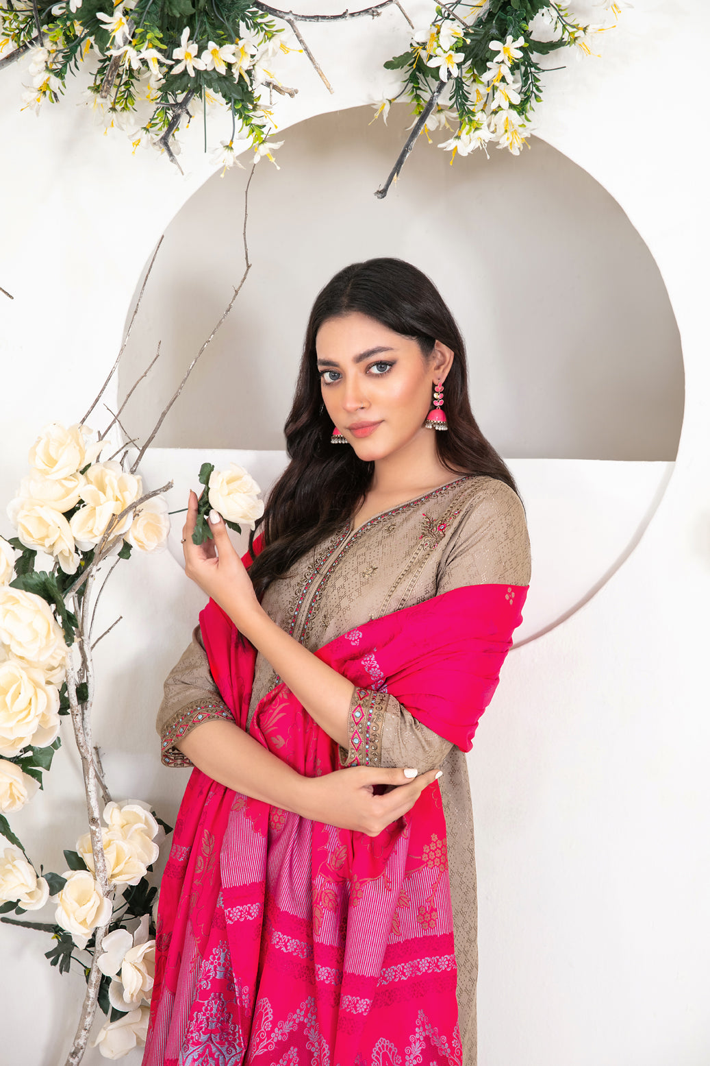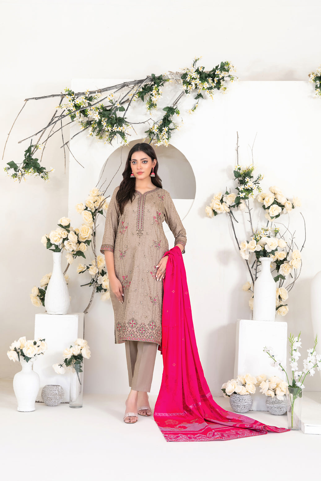 3 Piece Un-Stitched Collection By Tawakkal Fabrics, Attractive & Elegant Viscose Jaquard  Collection comes with: