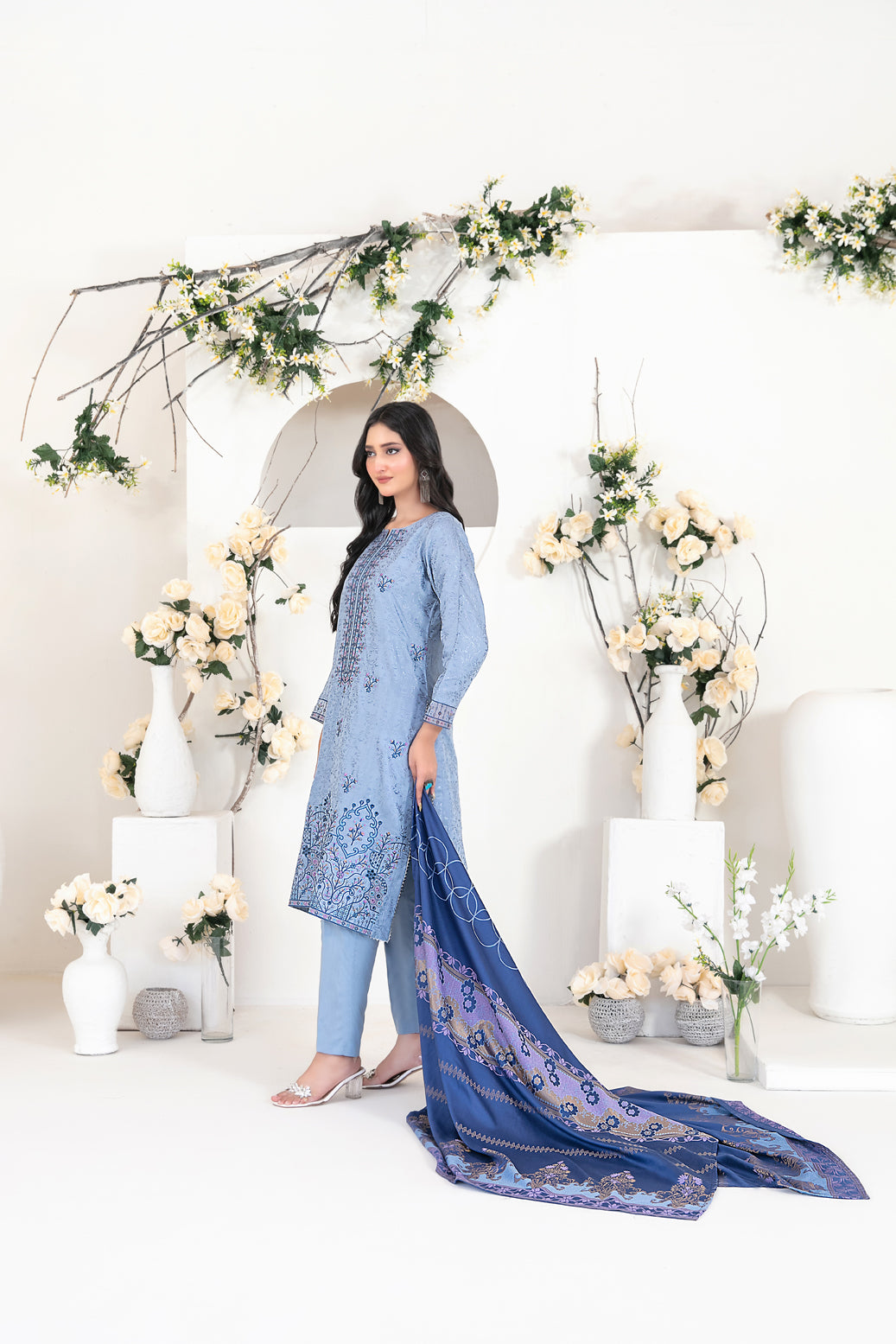 3 Piece Stitched Collection By Tawakkal Fabrics, Attractive & Elegant Viscose Jaquard Collection comes with: