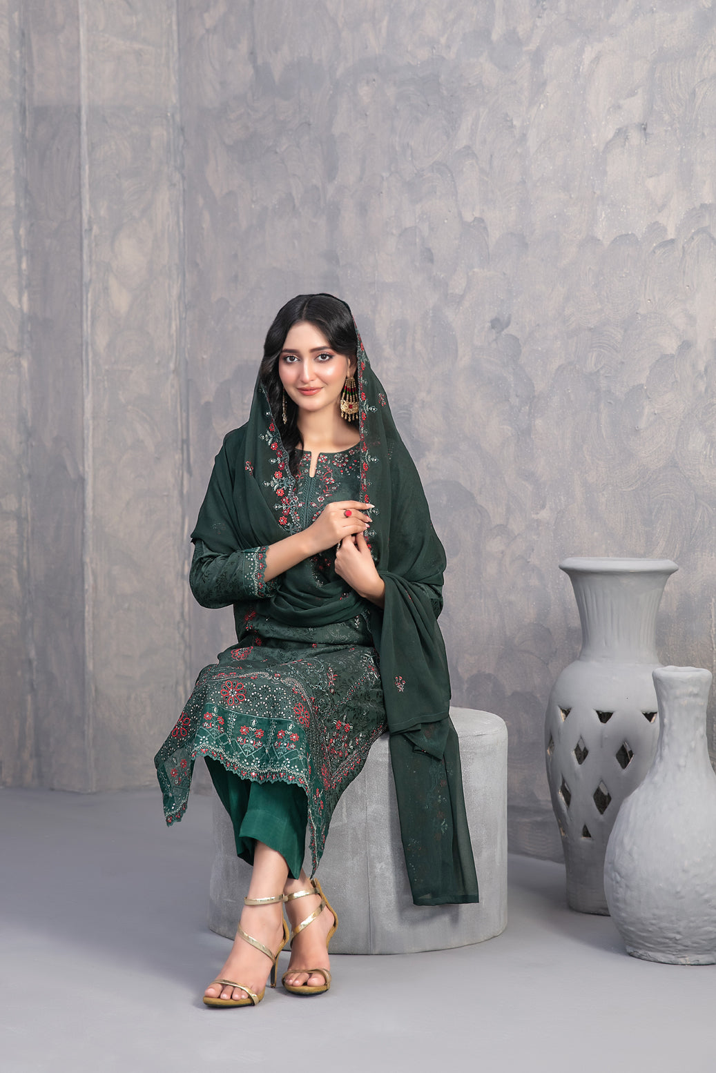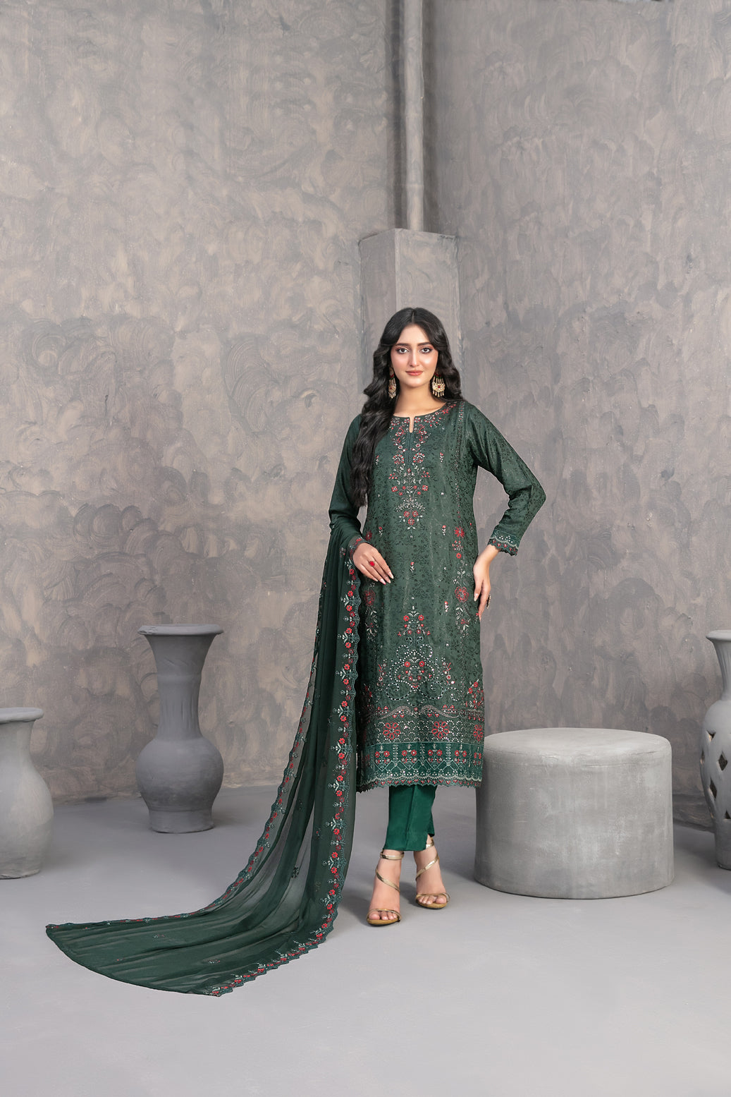 3 Piece Stitched Collection By Tawakkal Fabrics, Attractive & Elegant Viscose jaquard Collection comes with: