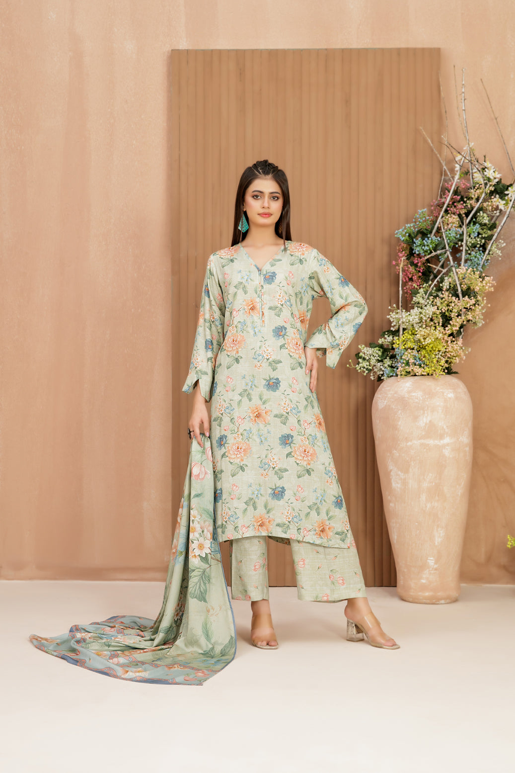 3 Piece Un-Stitched Collection By Tawakkal Fabrics, Attractive & Elegant  Leather Peach Collection comes with: