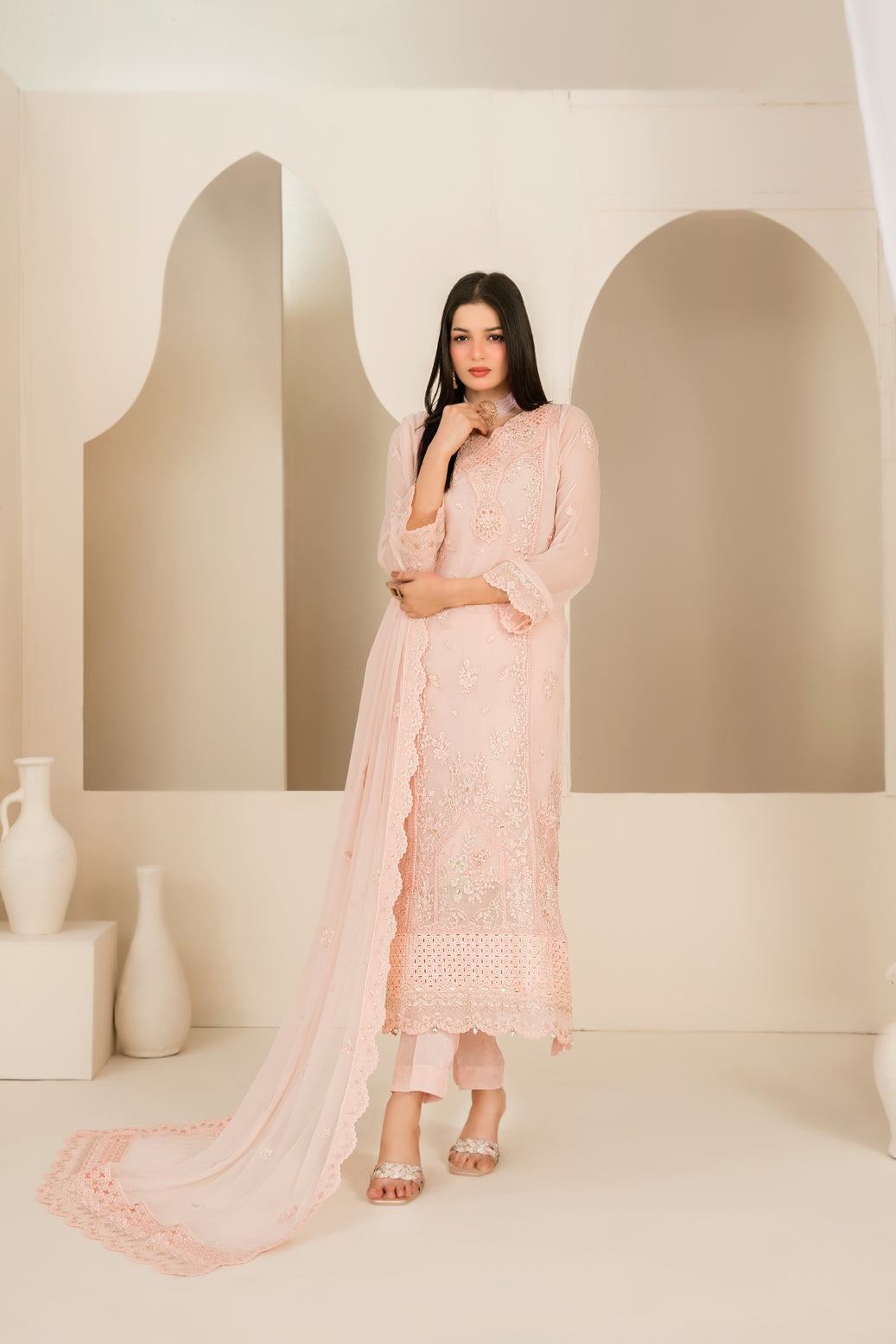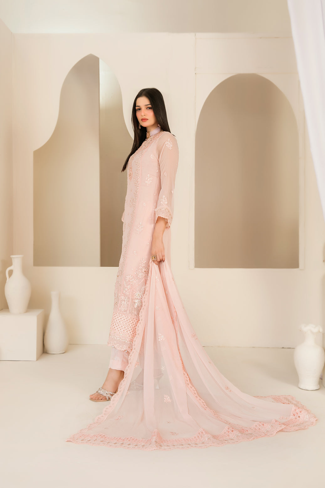 • Embroidered Chiffon Dupatta