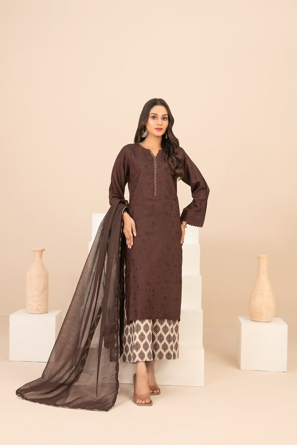 • Stitched Viscose Jacquard Designs with embellishments with