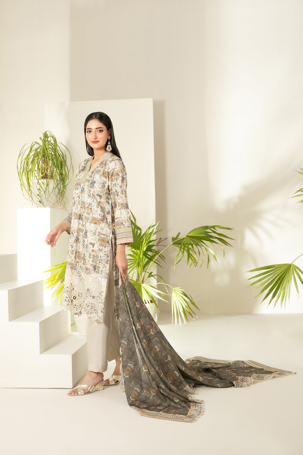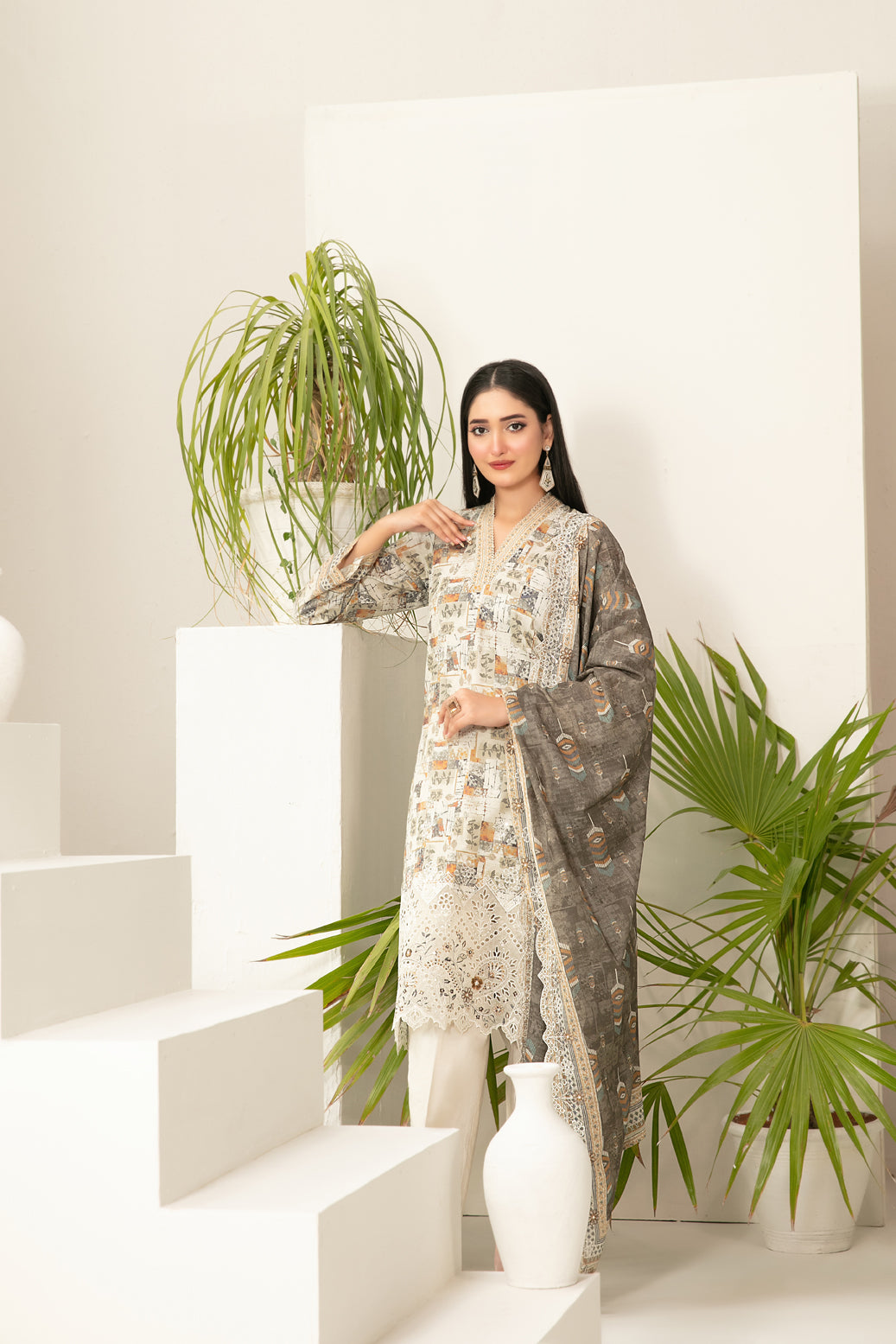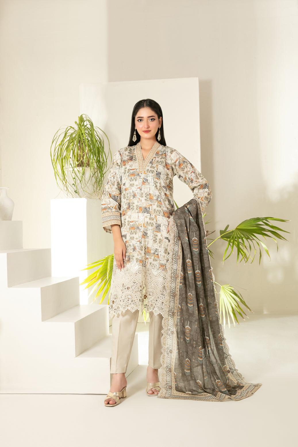 • Cutwork Embroidered  Digital Printed ND Lawn Dupatta