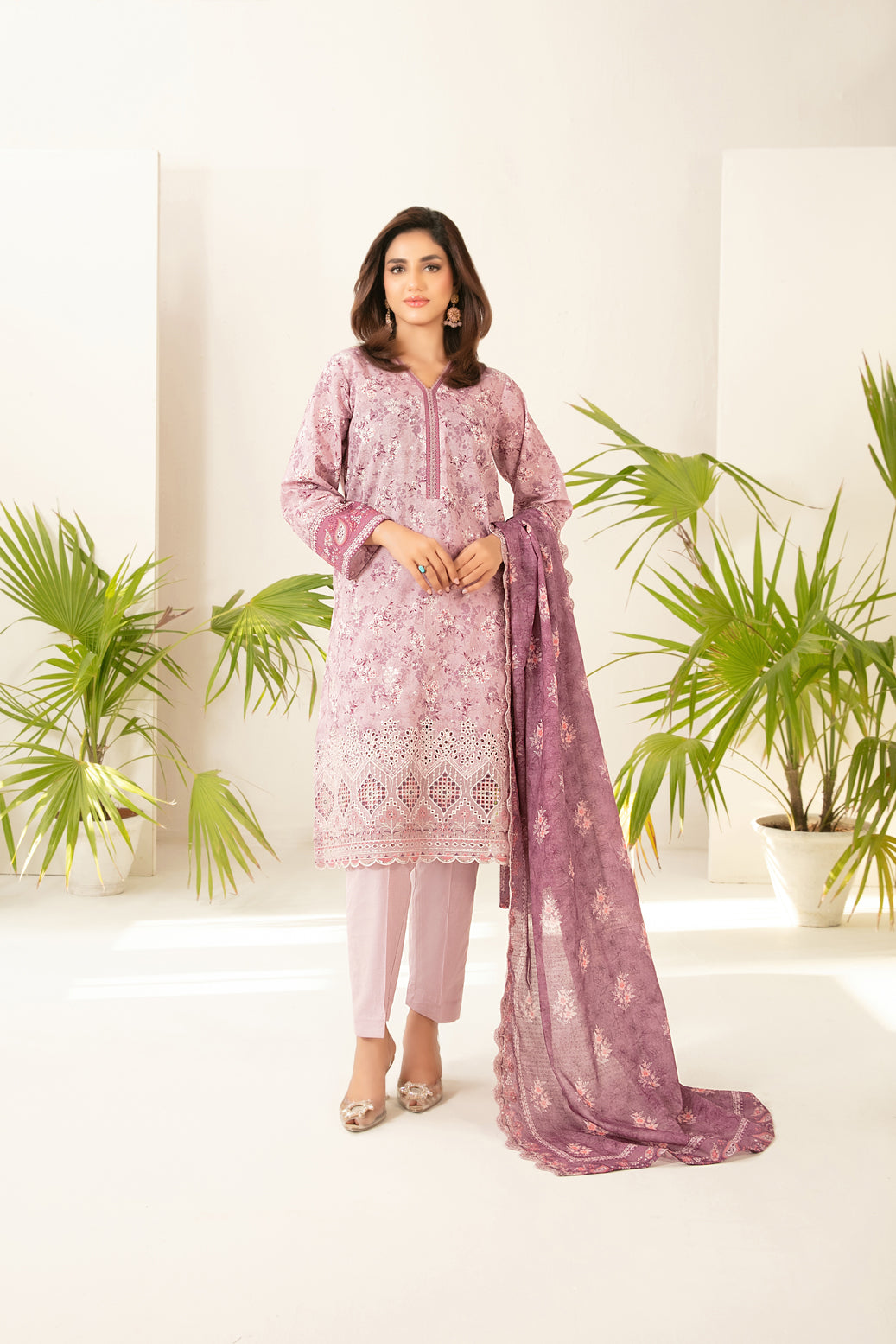 • Cutwork Embroidered  Digital Printed ND Lawn Dupatta