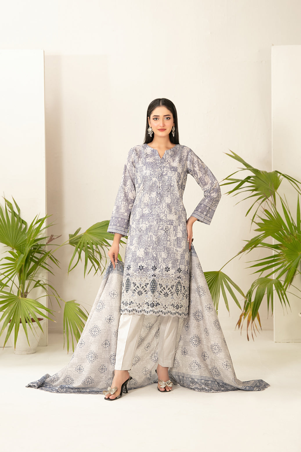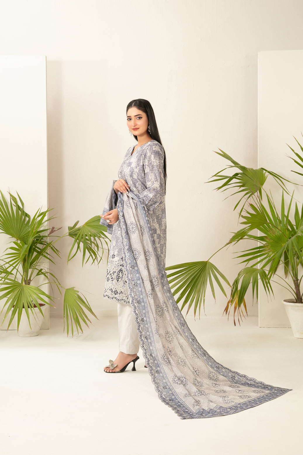 • Cutwork Embroidered  Digital Printed ND Lawn Dupatta