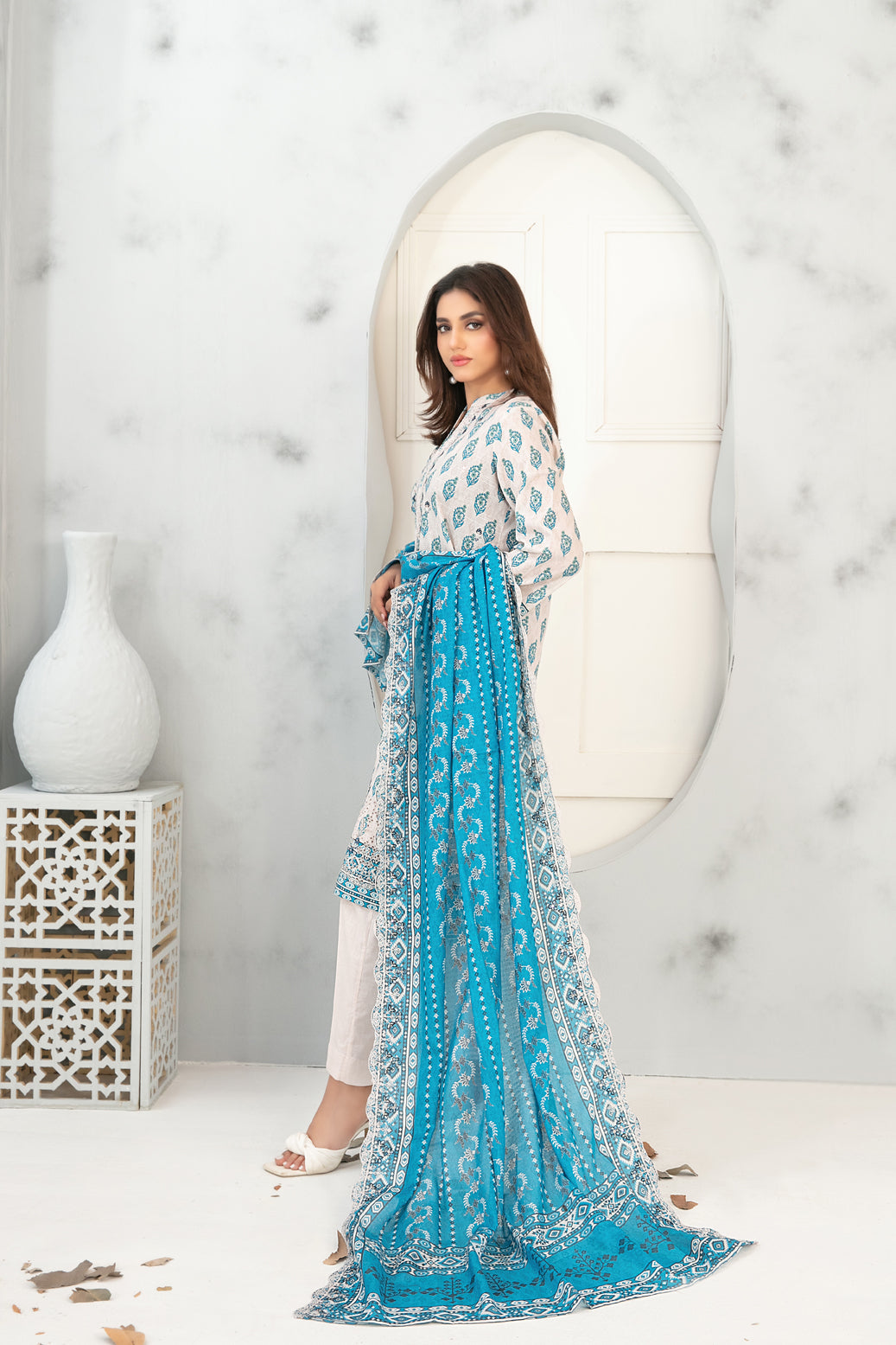 - Cutwork Embroidered Digital Printed ND Lawn Dupatta