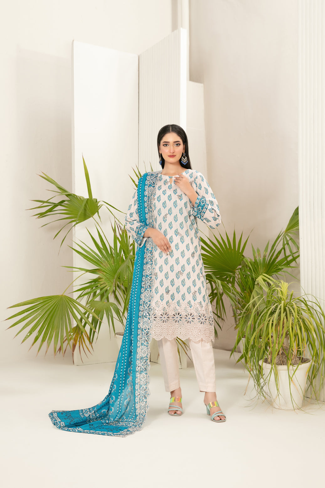 • Cutwork Embroidered  Digital Printed ND Lawn Dupatta
