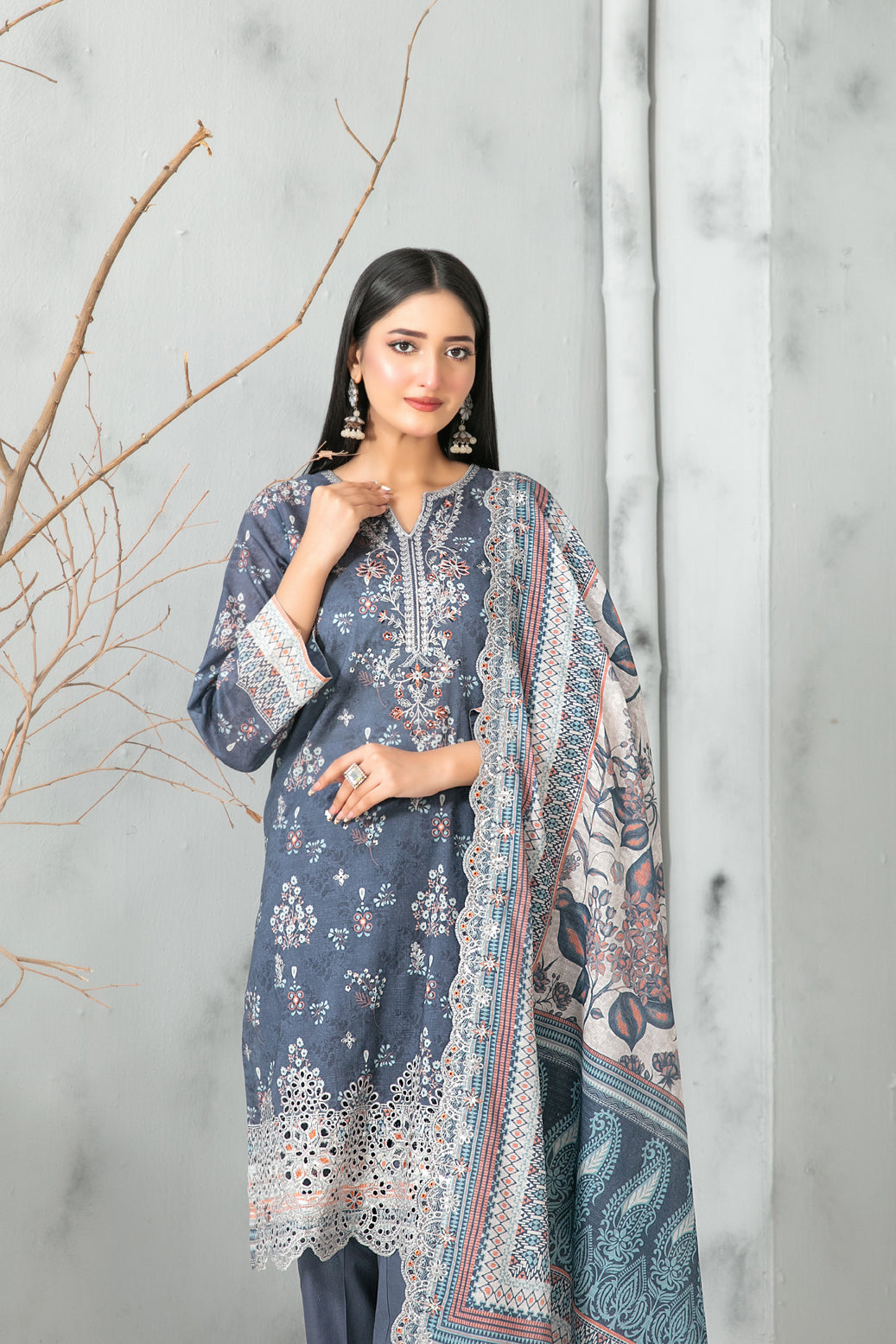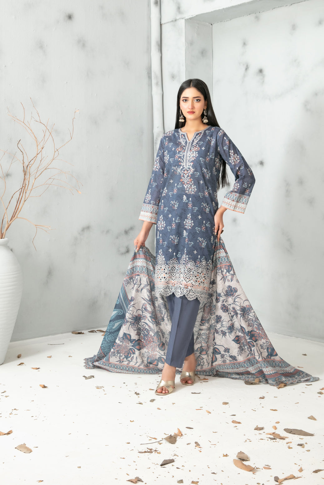 • Cutwork Embroidered  Digital Printed ND Lawn Dupatta