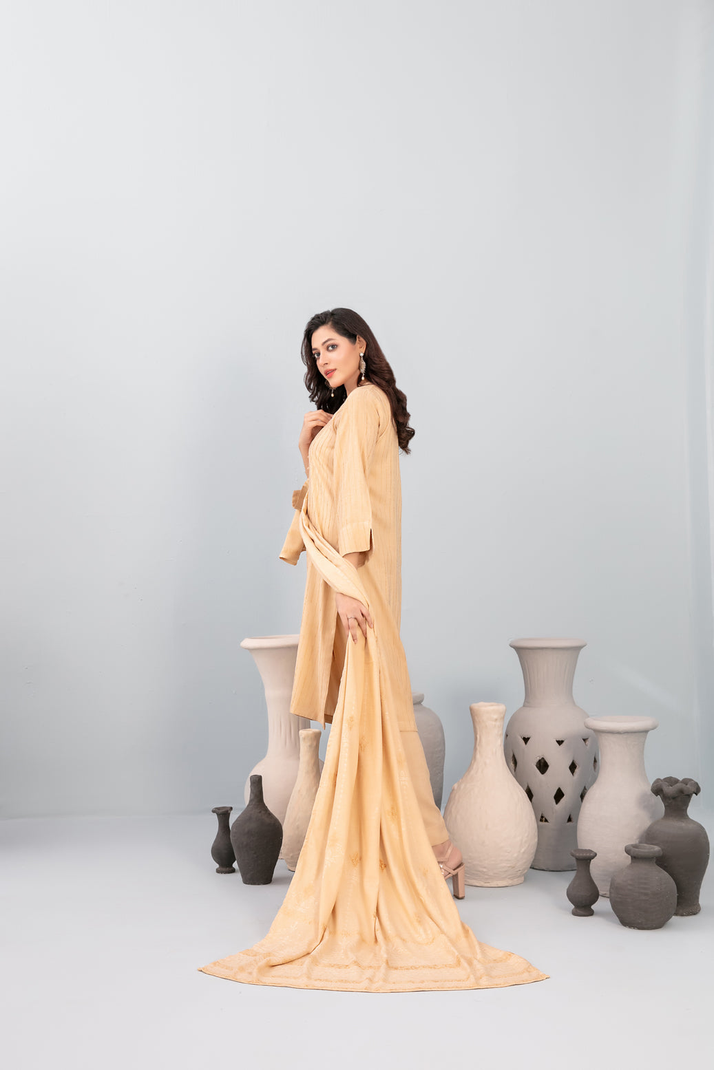 3 Piece Un-Stitched Collection By Tawakkal Fabrics, Attractive & Elegant Fancy Exclusive Leather Peach Shawl Collection