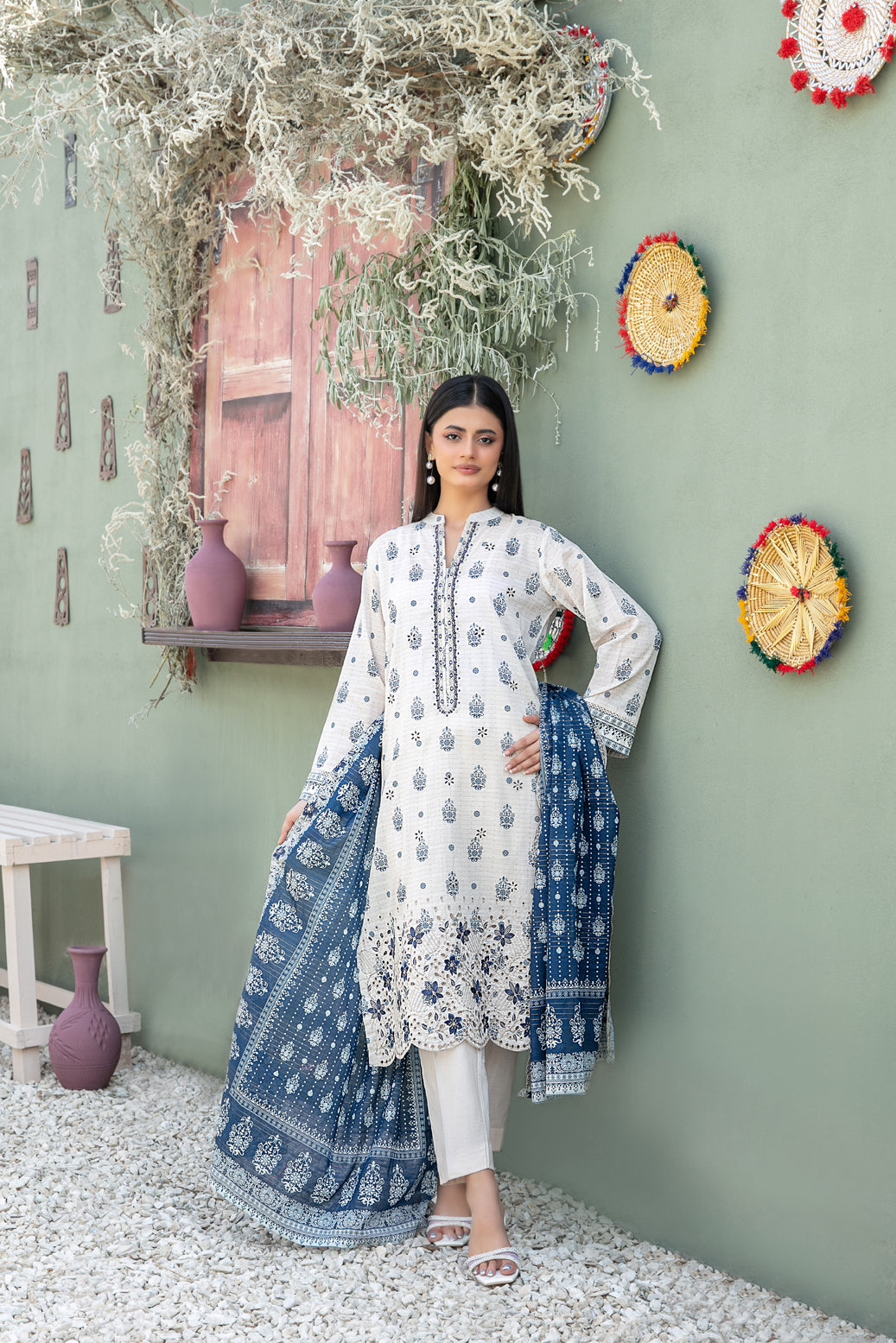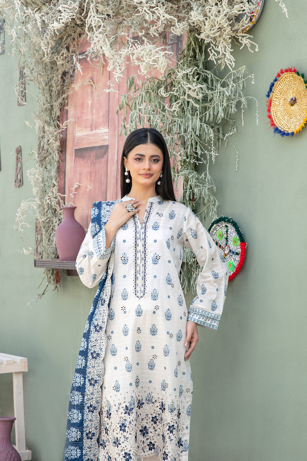 - Cutwork Embroidered Digital Printed ND Lawn Dupatta