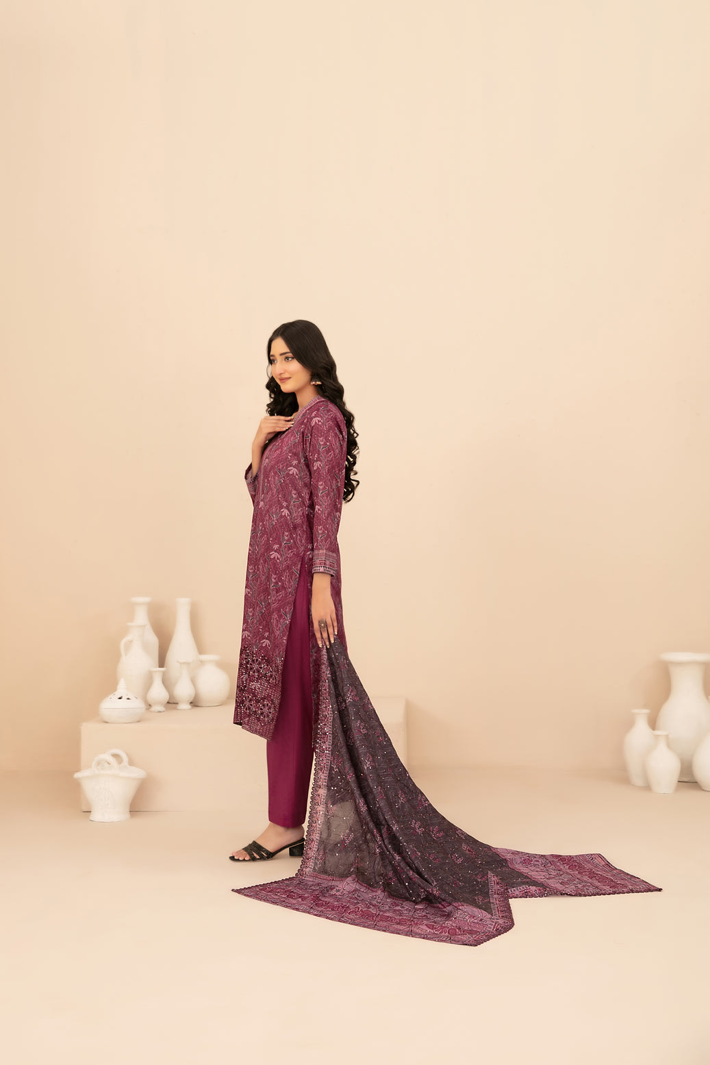 • Cutwork Embroidered Digital Printed ND Lawn Dupatta