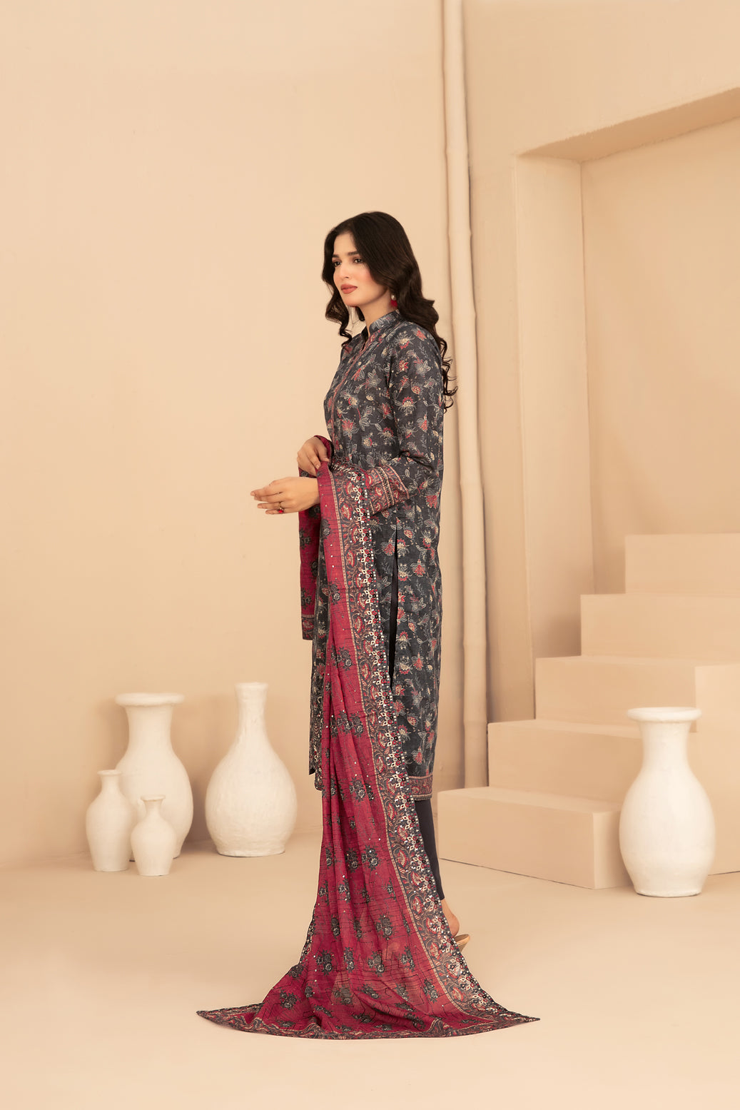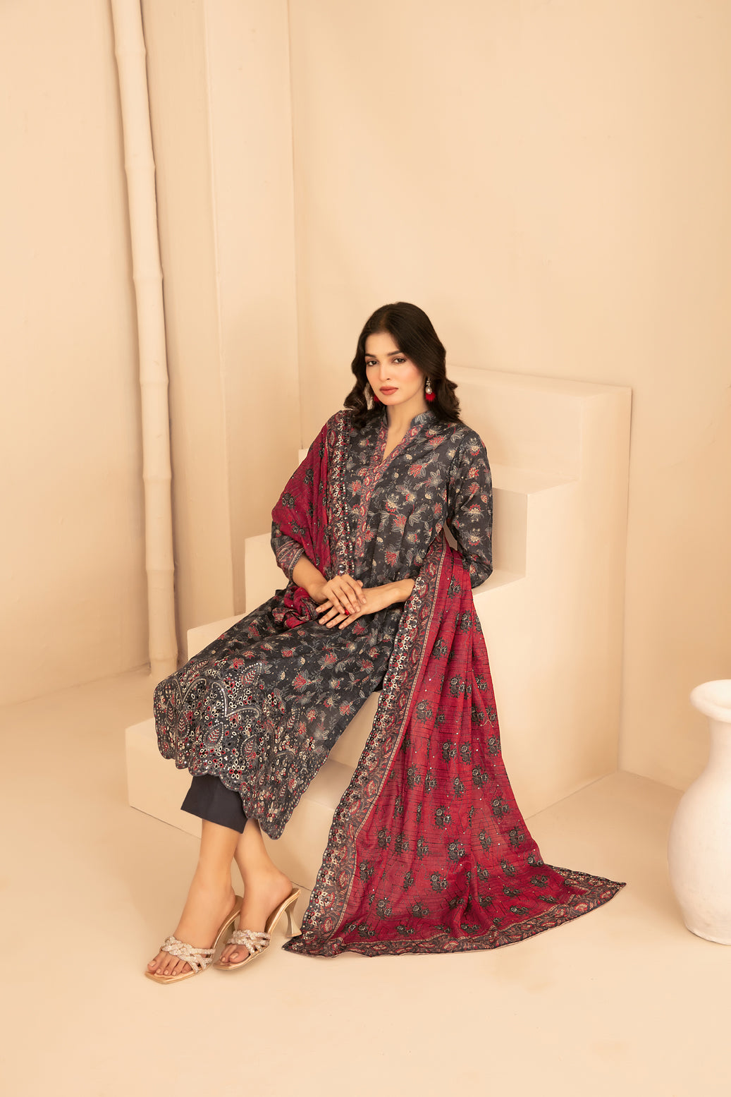 • Cutwork Embroidered Digital Printed ND Lawn Dupatta