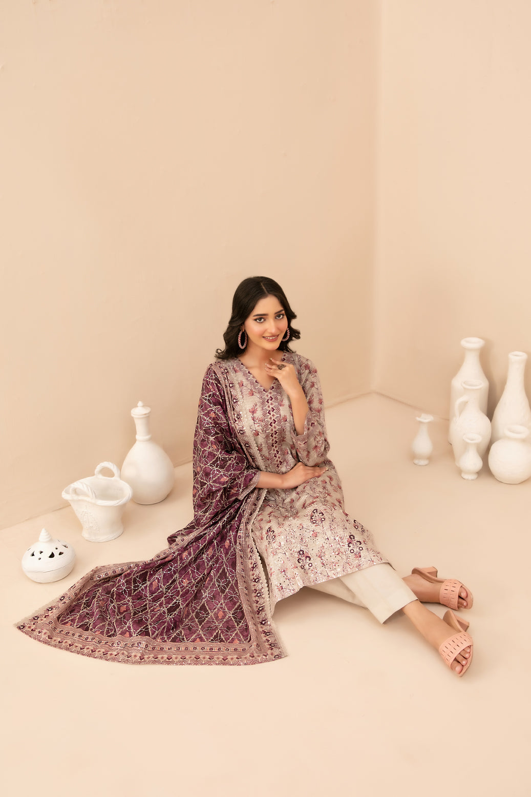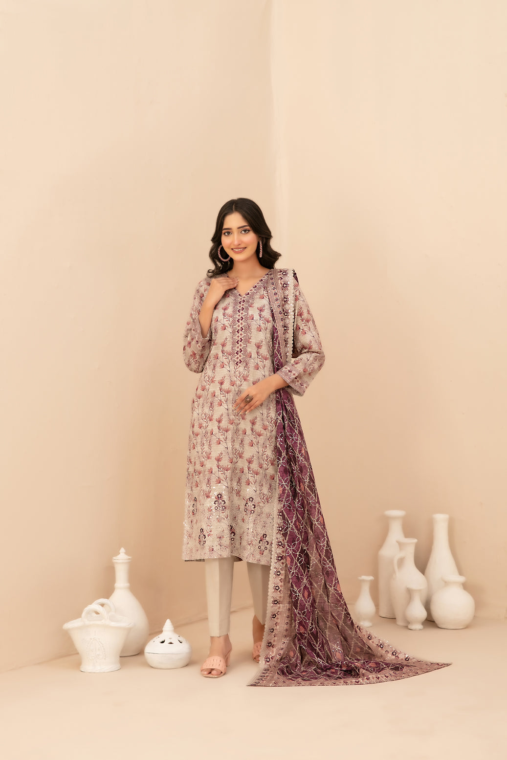 • Cutwork Embroidered Digital Printed ND Lawn Dupatta