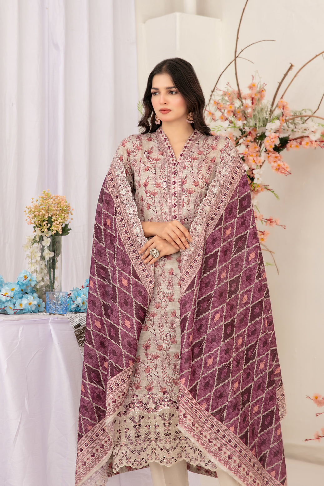 • Embroidered Digital Printed Cut-Work Dupatta