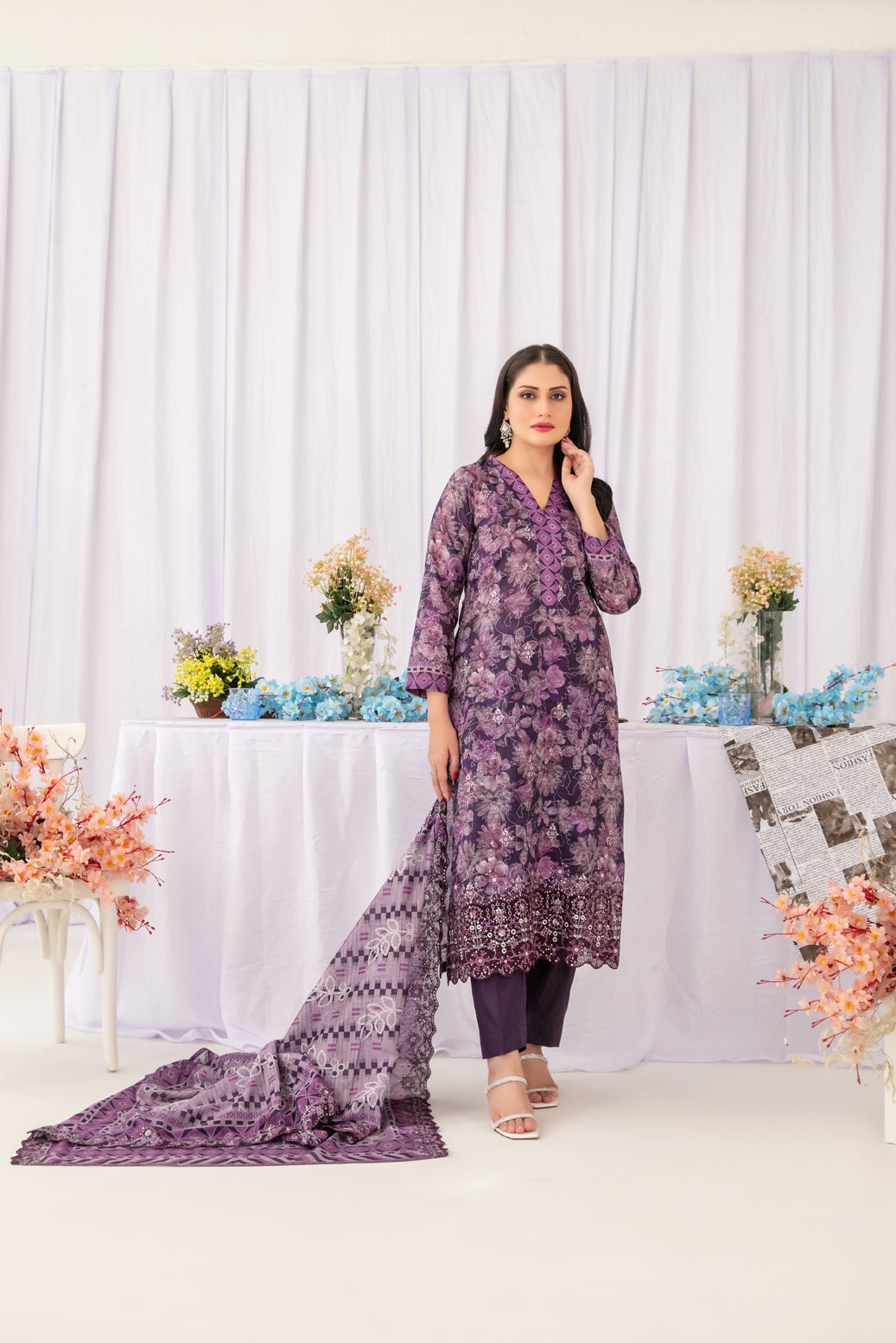 • Un-Stitched  Embroidered Digital Printed Chikankari Lawn Shirt Designs