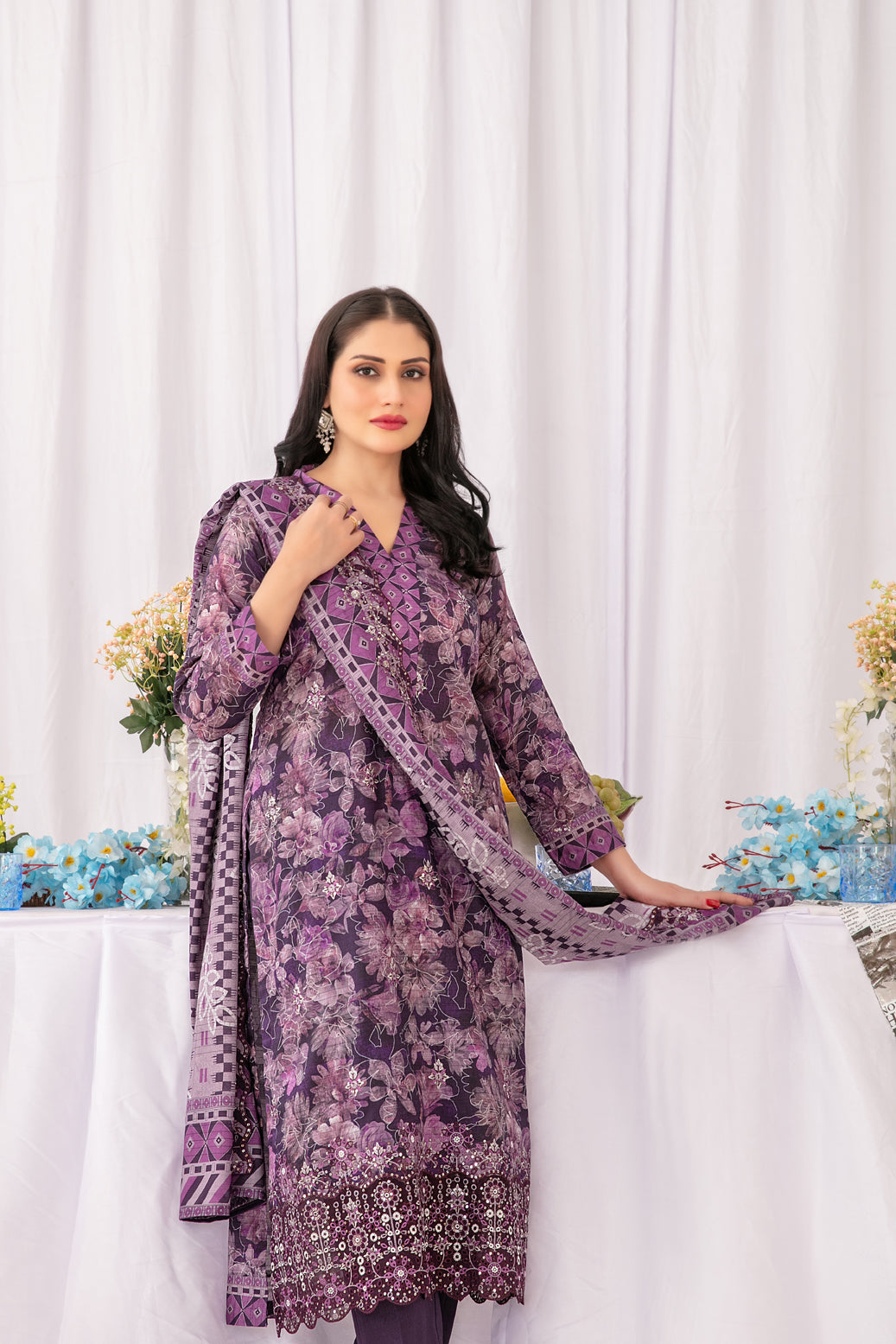 • Embroidered Digital Printed Cut-Work Dupatta