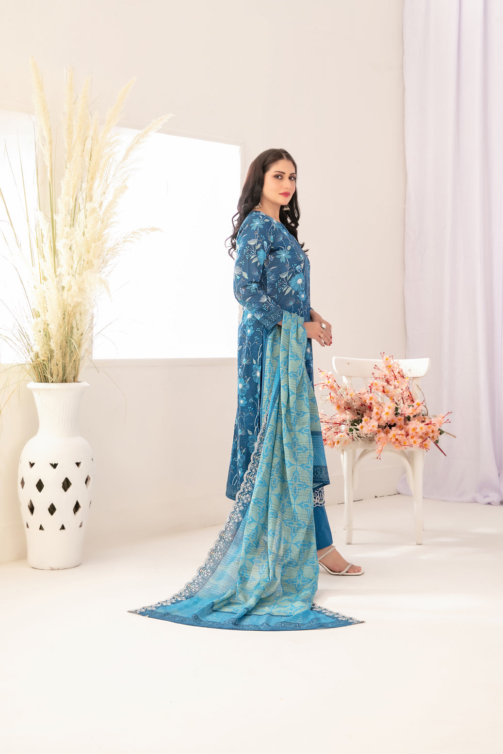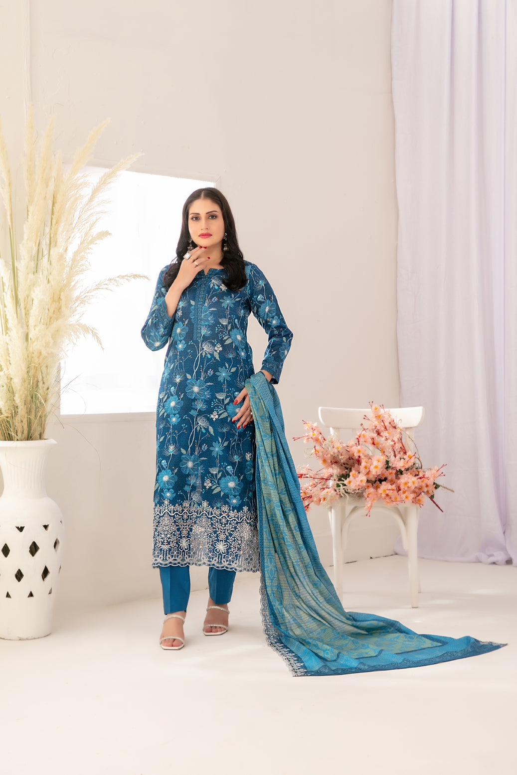 • Un-Stitched  Embroidered Digital Printed Chikankari Lawn Shirt Designs