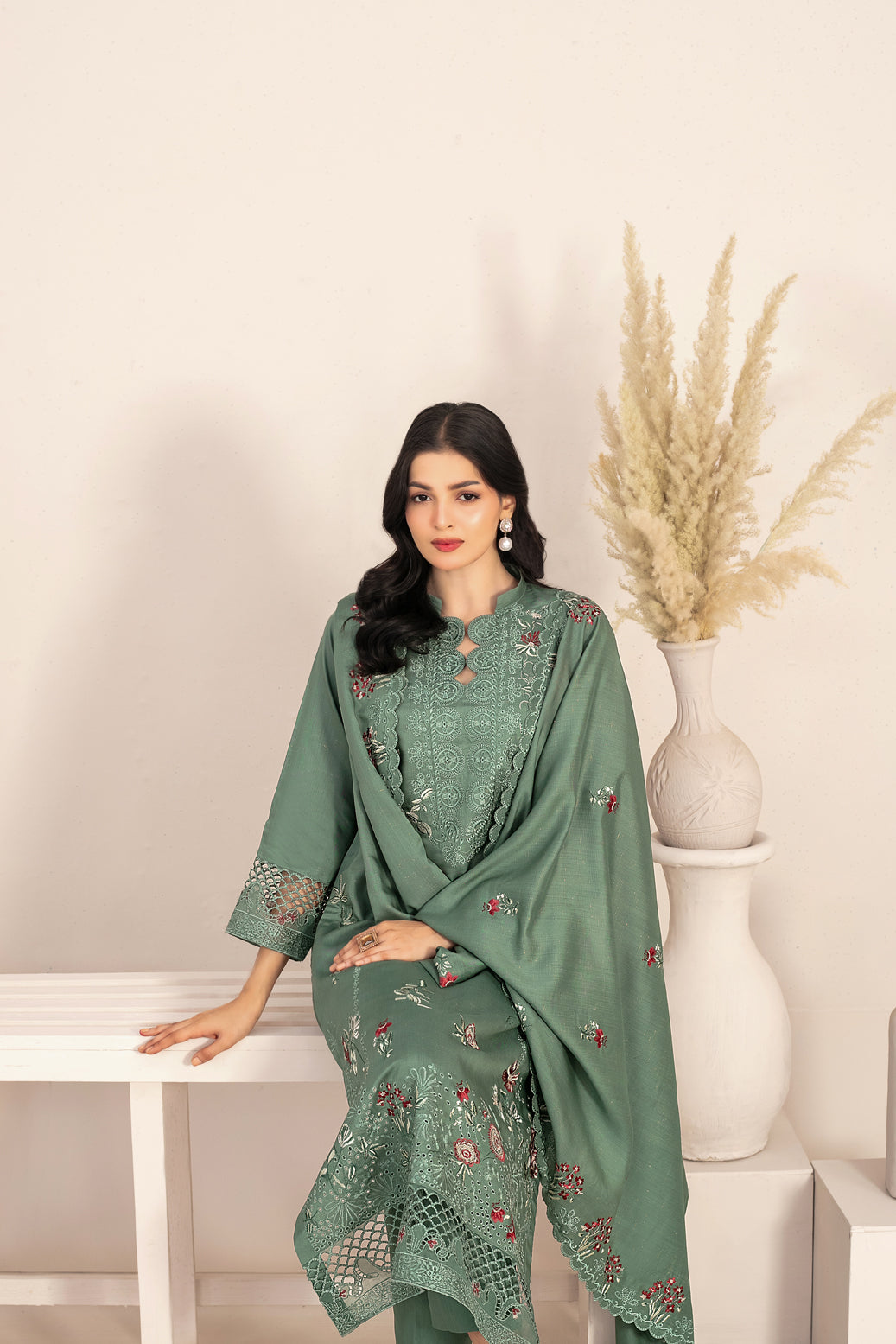 • Embroidered Zari Viscose Shawl Dupatta