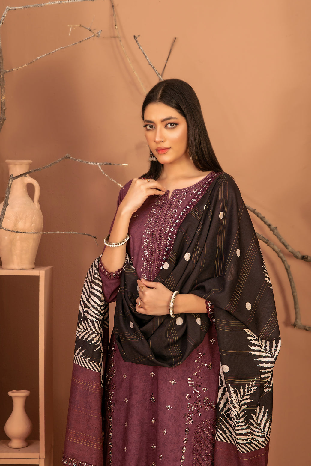 • Embroidered Digital Printed  Shawl Dupatta