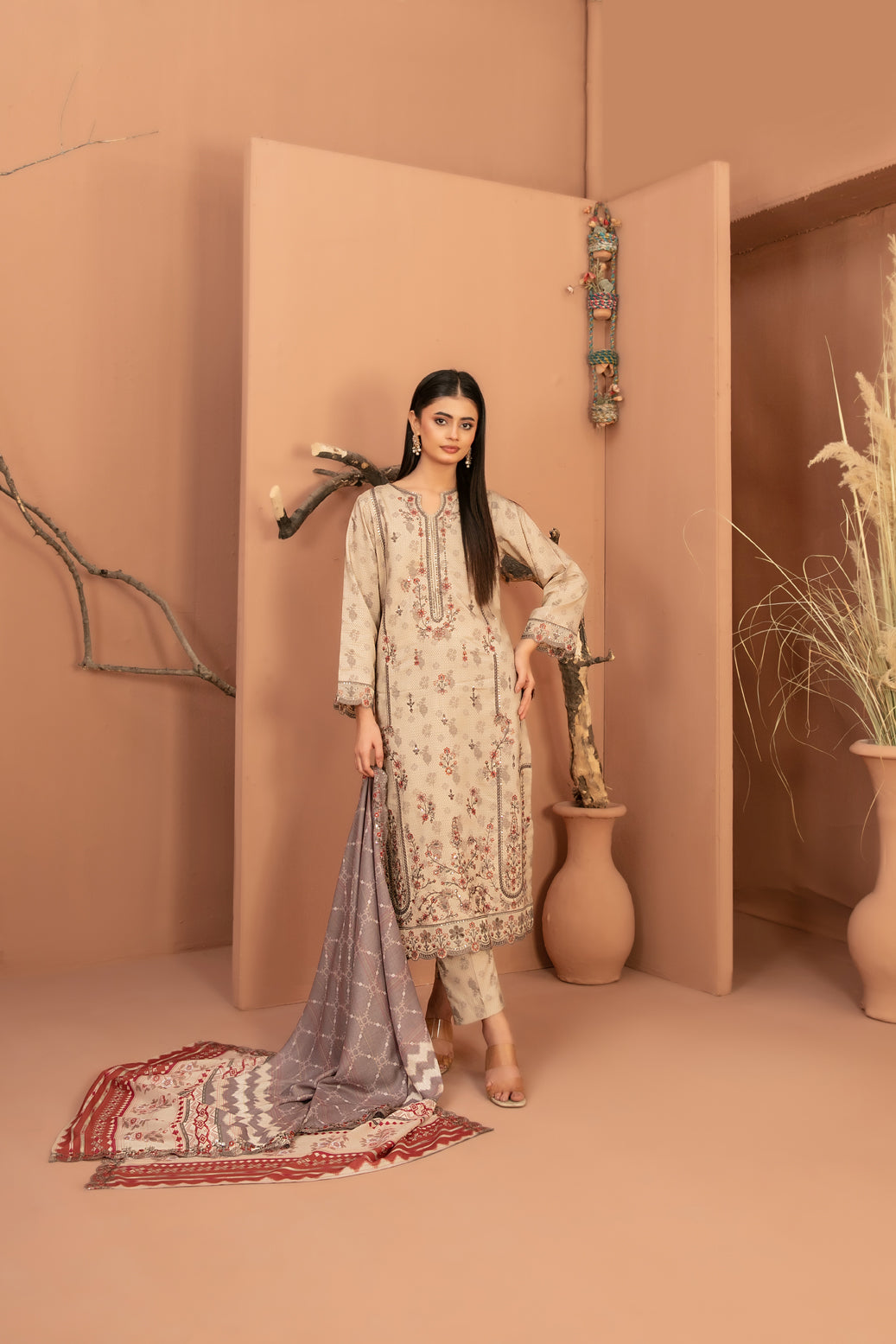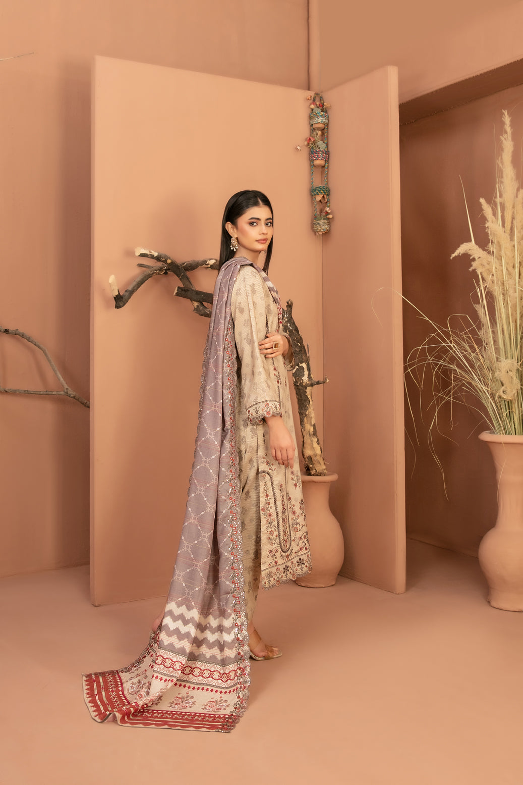 • Embroidered Digital Printed  Shawl Dupatta