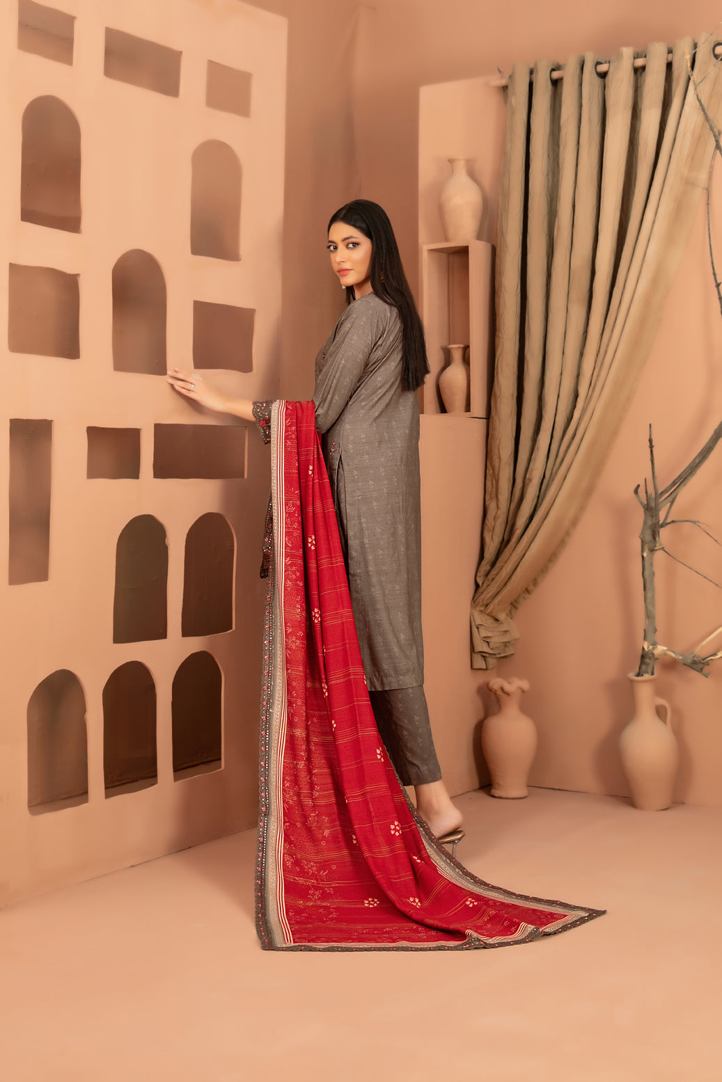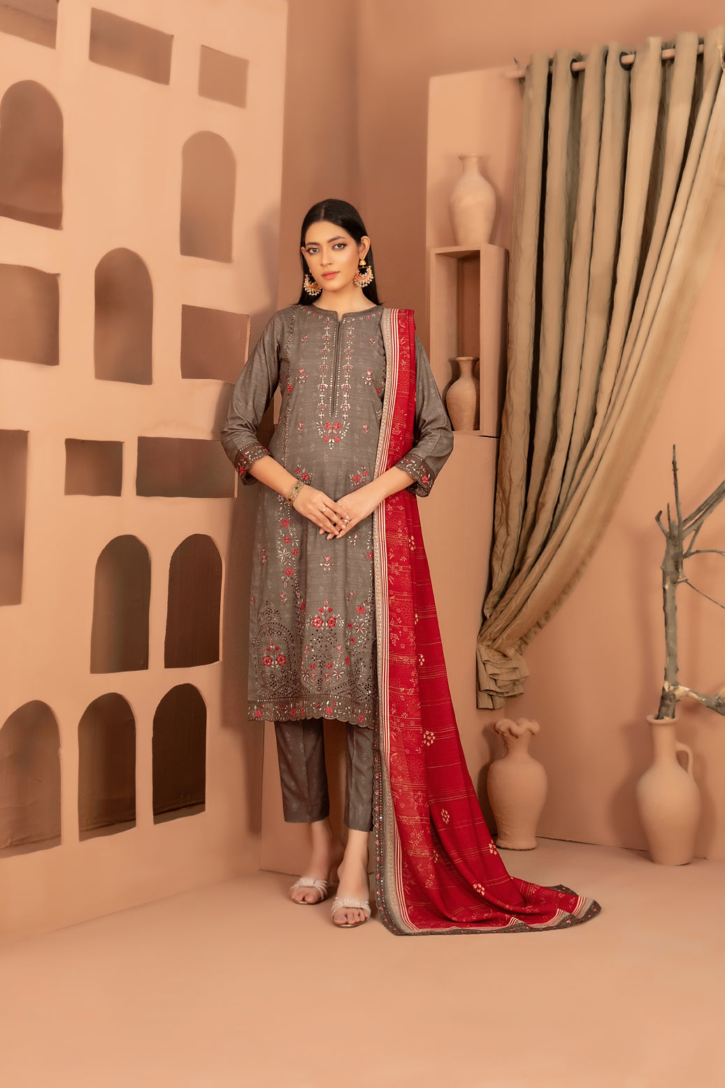 • Embroidered Digital Printed  Shawl Dupatta
