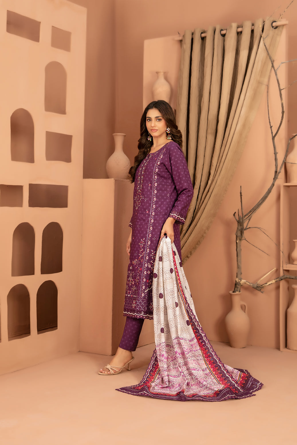 • Embroidered Digital Printed  Shawl Dupatta