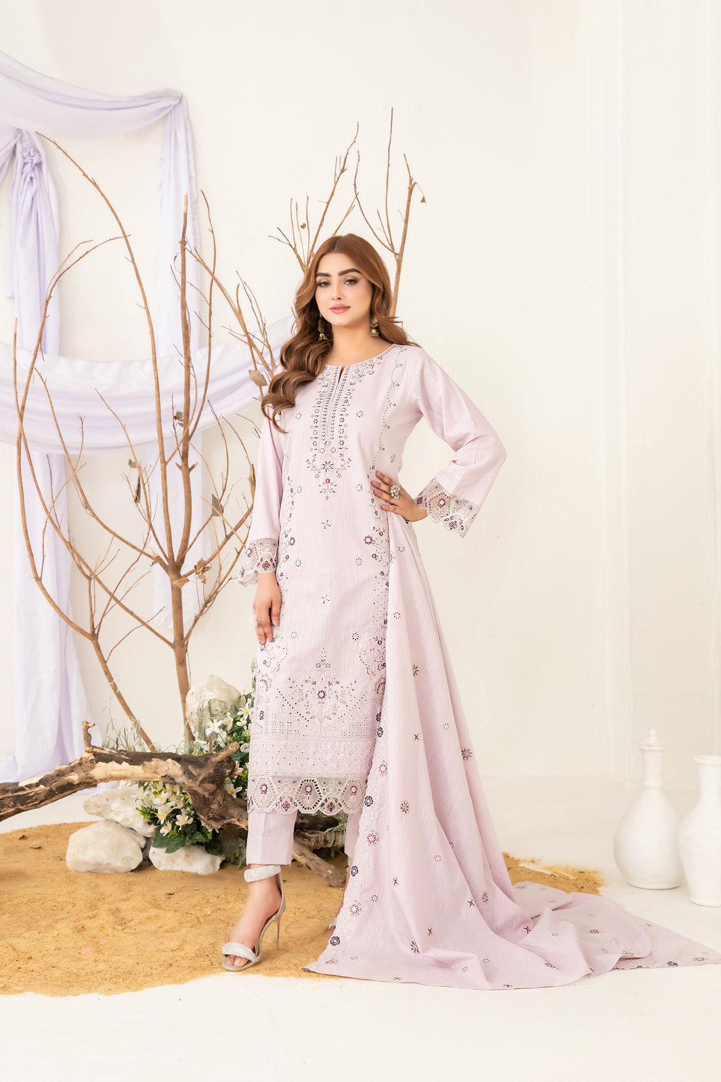 3 Piece Un-Stitched Collection By Tawakkal Fabrics, Attractive & Elegant Fancy Embroidered Ayudia Collection Comes With: