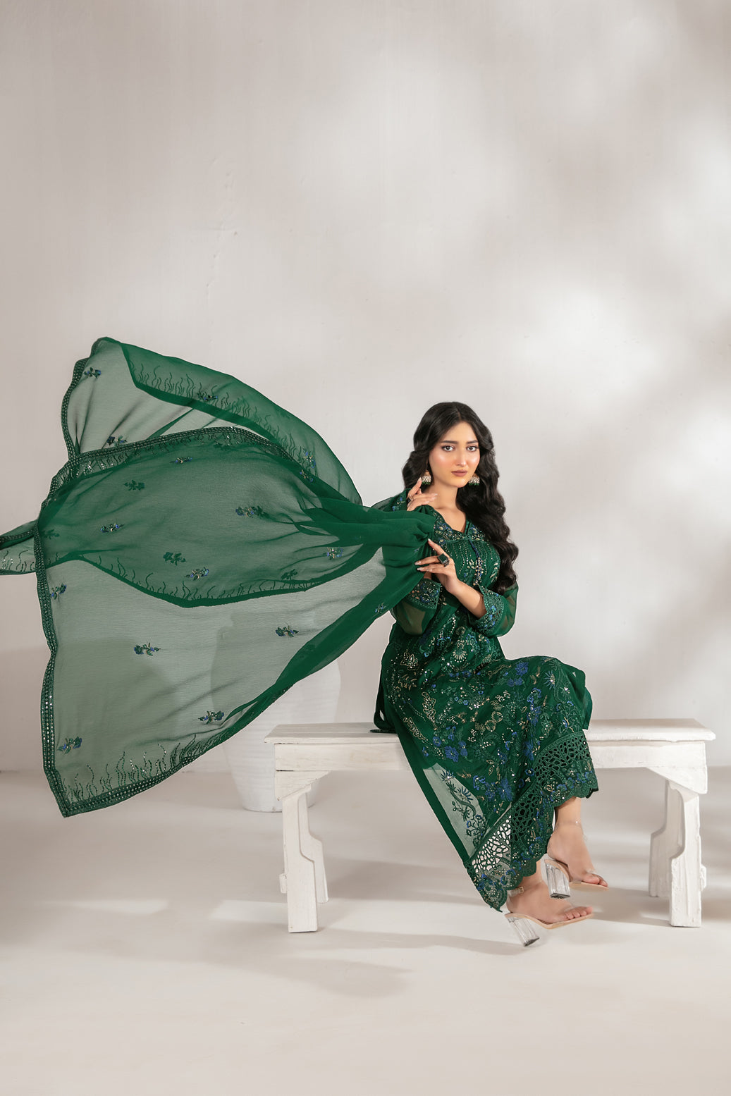 • Semi-Stitched Fancy Embroidered Chiffon Shirt Designs with embellishments