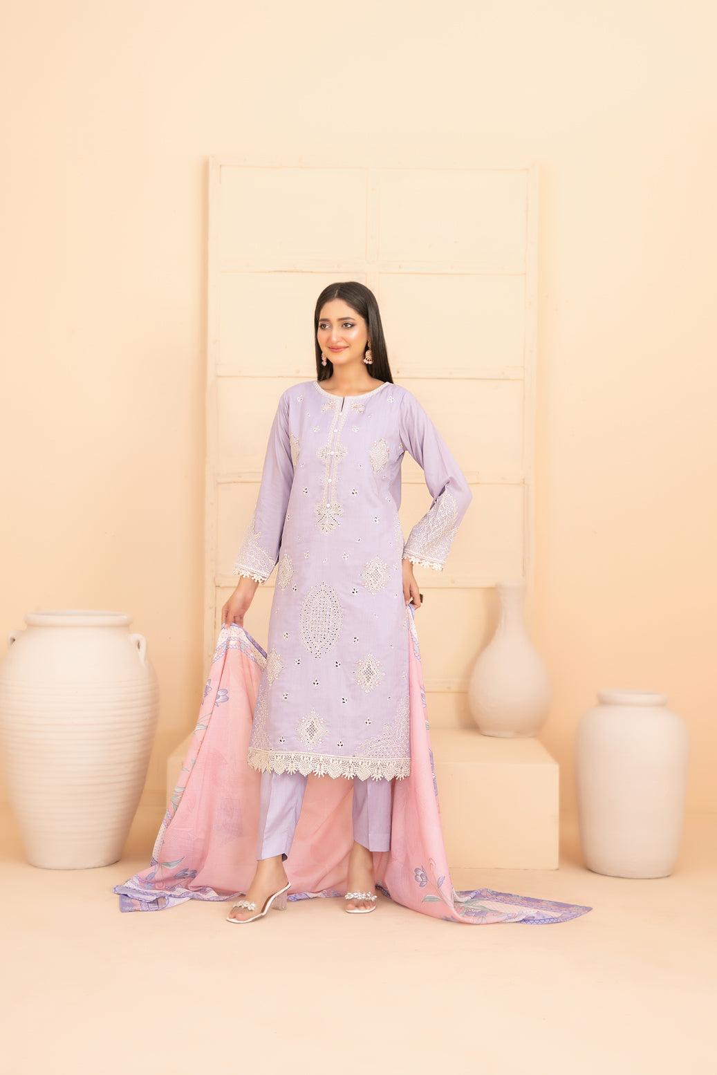 • Stitched Embroidered Staple Shirt Designs with Embellishments