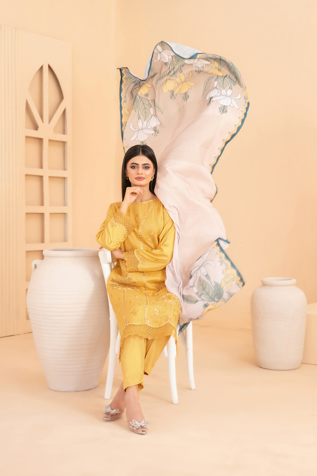 • Stitched Embroidered Staple Shirt Designs with Embellishments