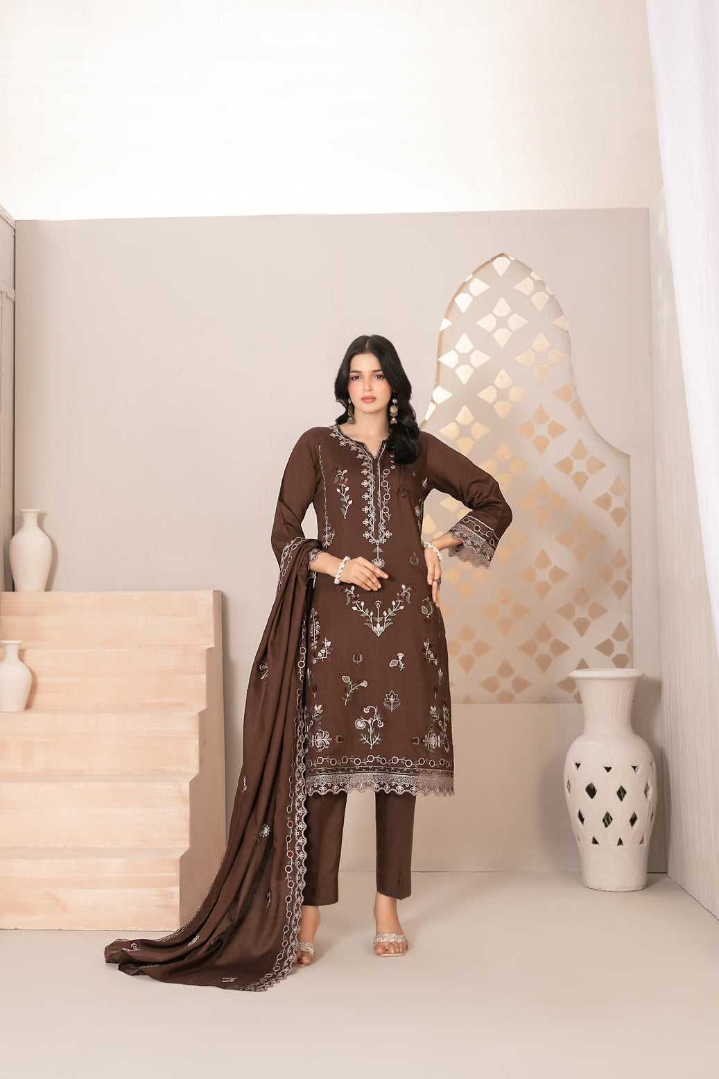 - Embroidered Slub Shawl Dupatta
