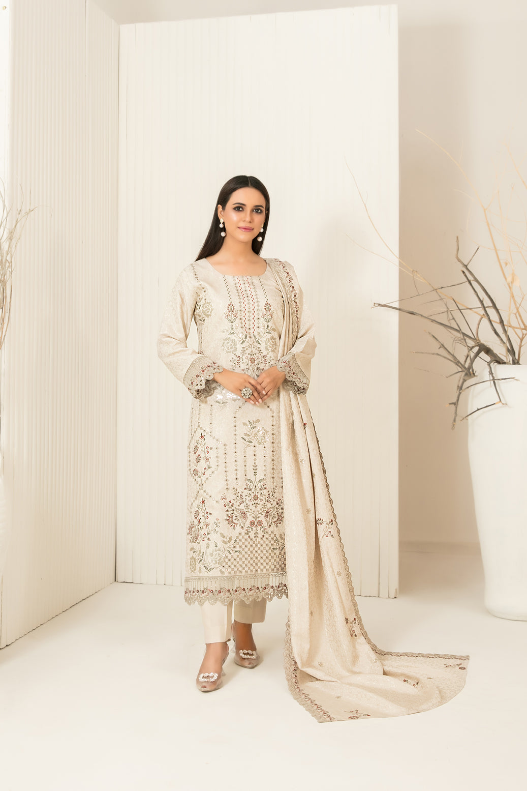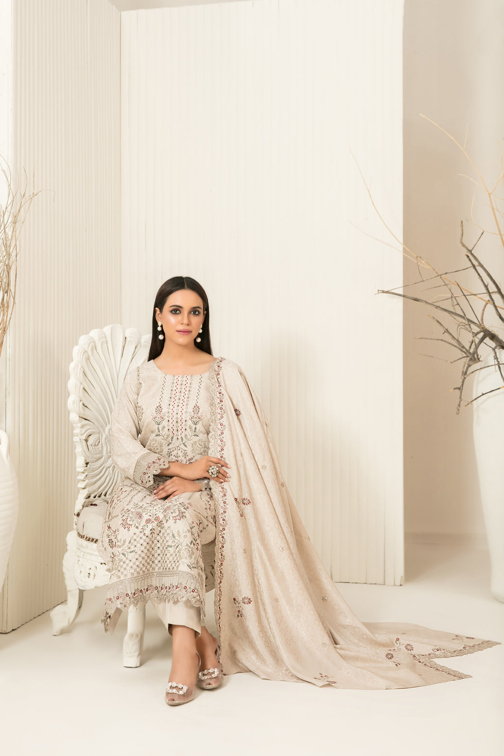 • Embroidered Jacquard Viscose Shawl Dupatta